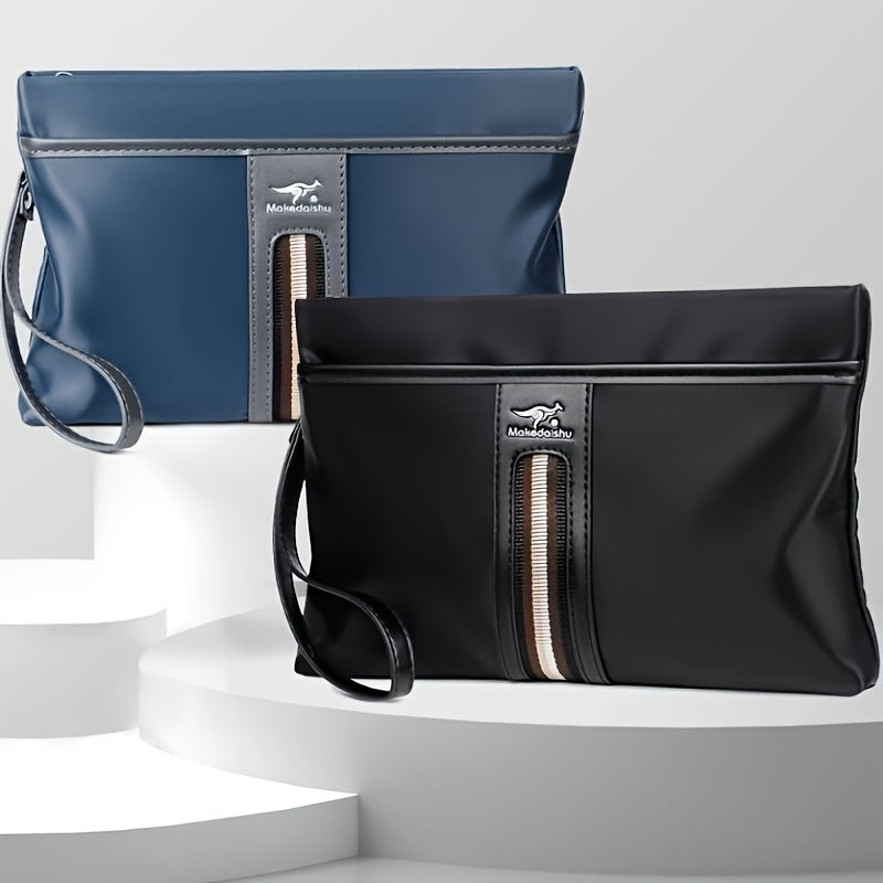 MARHSEIKE Men's Large Capacity Clutch Bag - Stylish Black Nylon Handbag with Zippered Compartment & Adjustable Strap, Trendy Business Phone Holder for Everyday Use, Secure Travel Pouch|Modern Masculine Clutch|Durable Zipper C