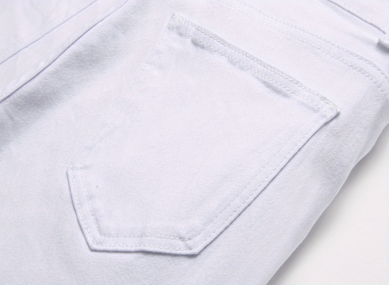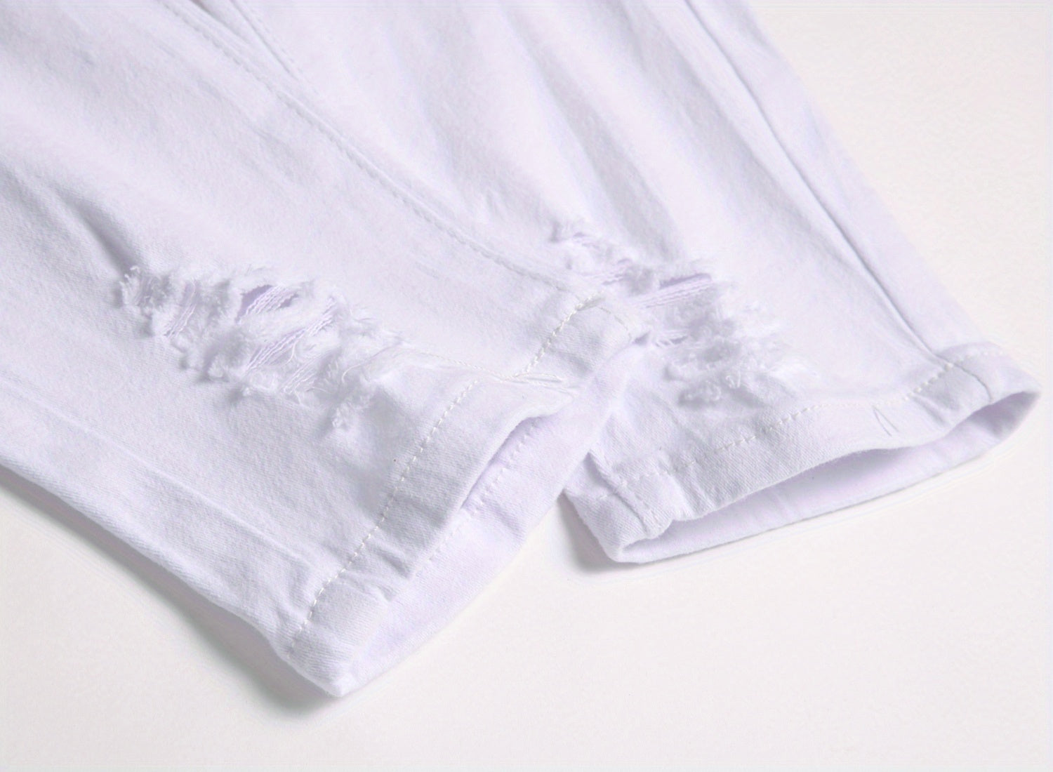 Men Fashion White Ripped Distressed Destroyed Washed Denim Jeans Ripped Slim Fit Wild Jeans White Denim Pants
