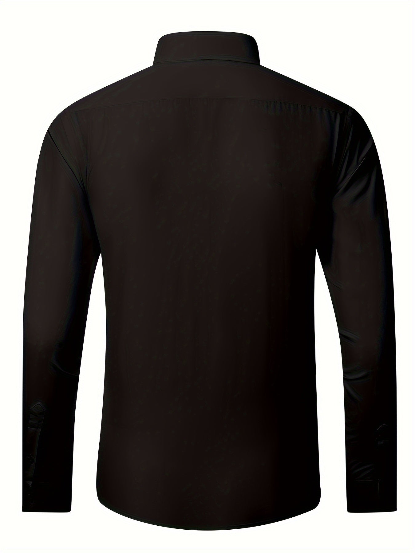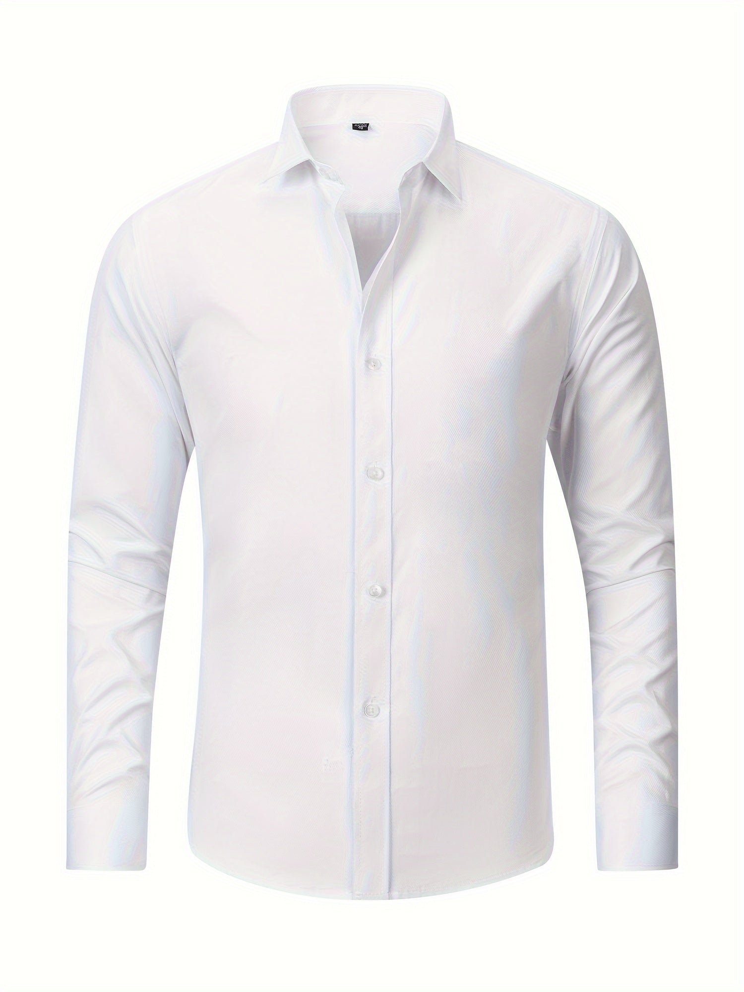 Men's Classic White Long Sleeve Dress Shirt - Business Casual, Non-Iron Polyester, Machine Washable
