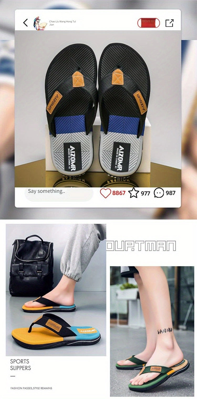 Men's Non-Slip EVA Slip-Resistant Flip-Flops - Heavy-Duty Ergonomic Arch & -Odor Technology, Green/Golden/Grey/Grip Tread Beach Sandals with Ergonomic Arch, Lightweight & Durable for Swimming, Walking, Pool - Multi-Color Opti