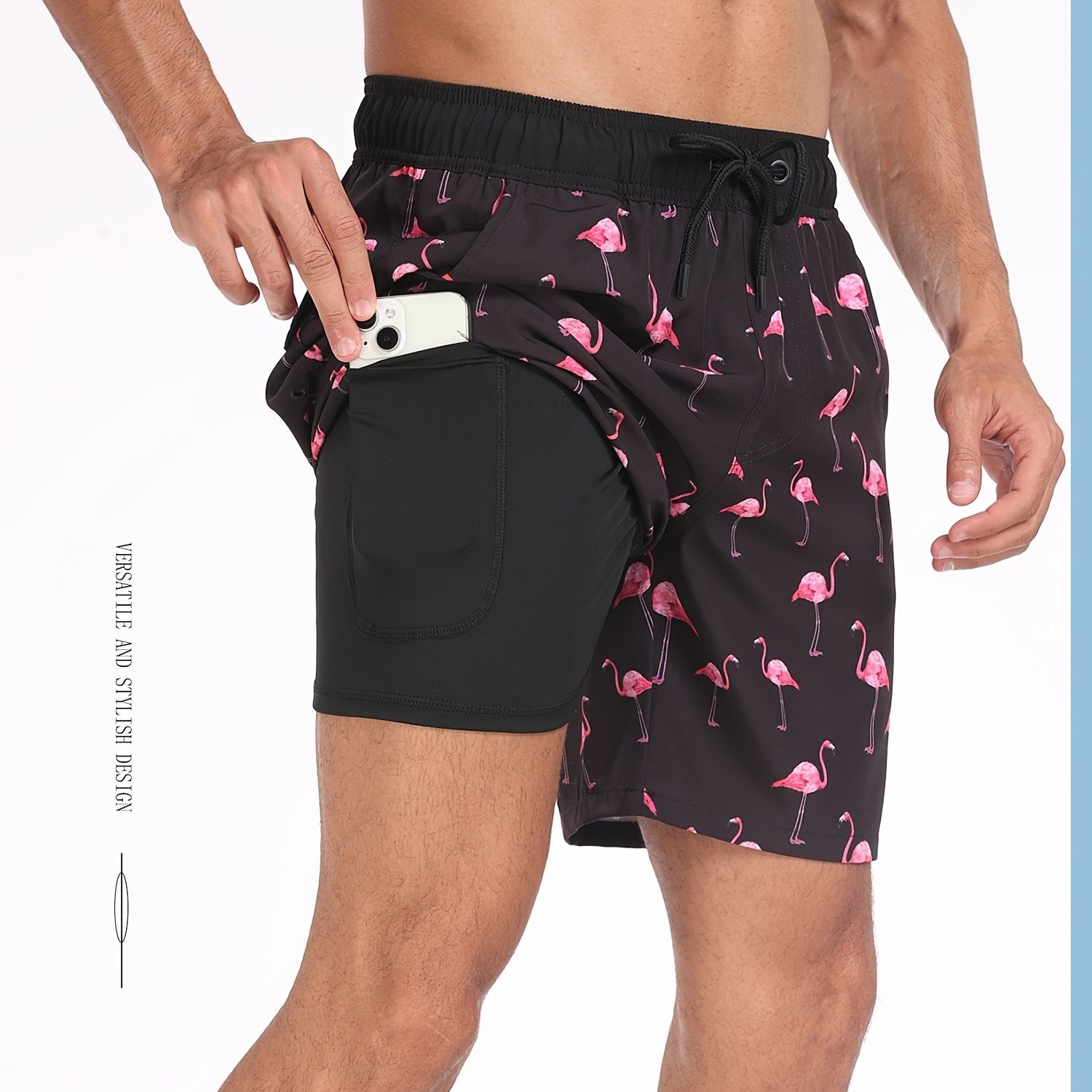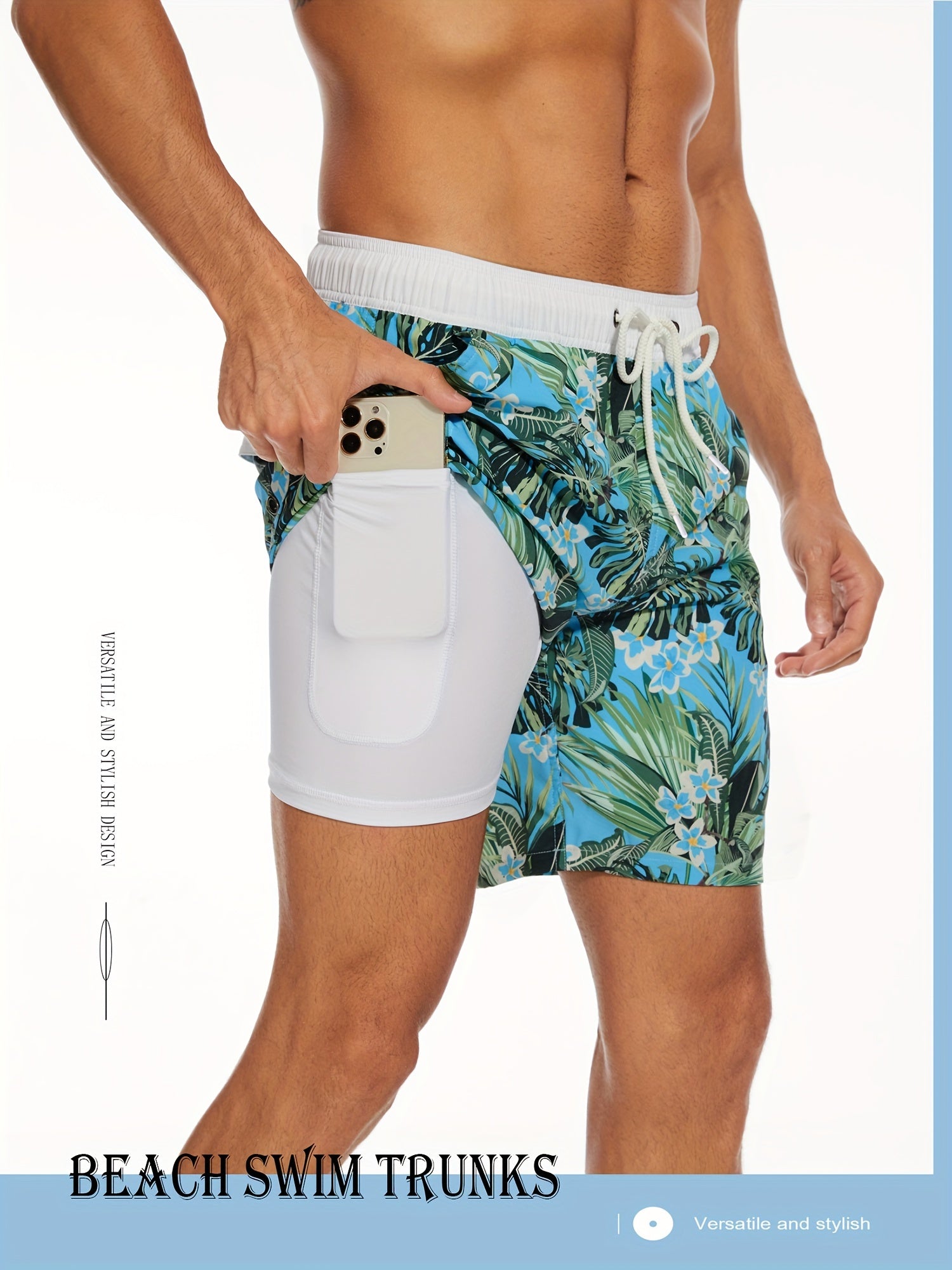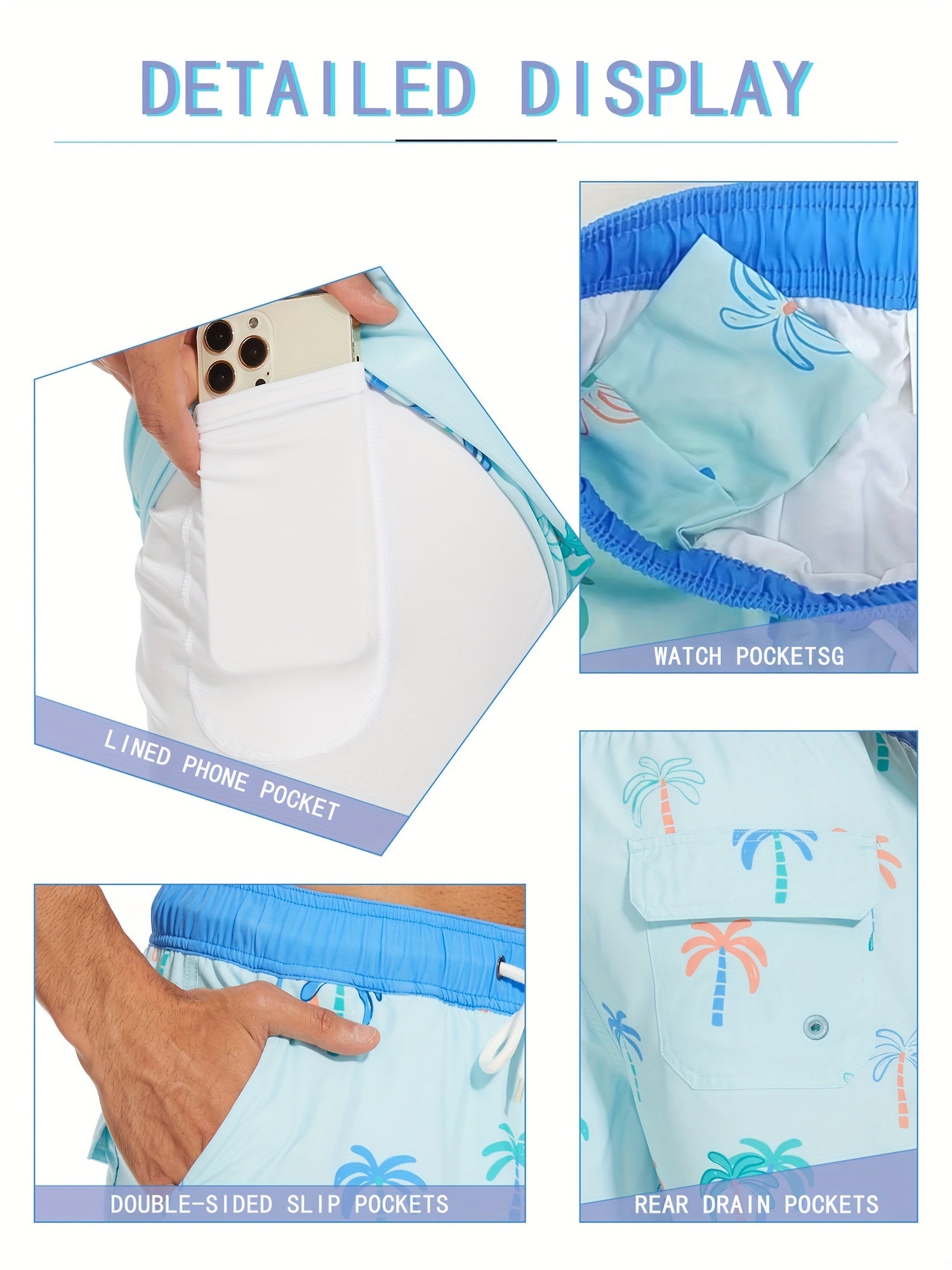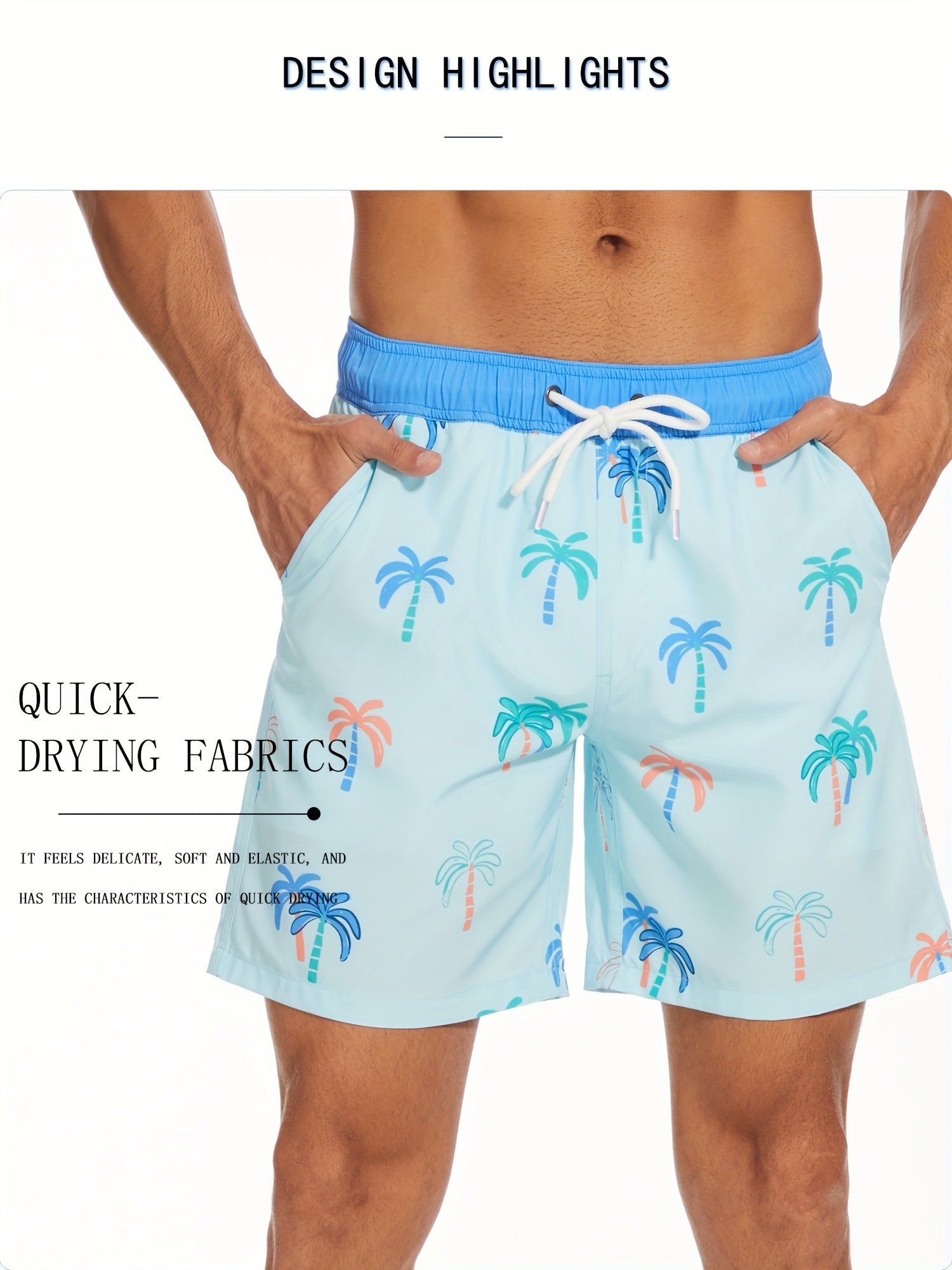 Men's Quick-Dry Beach Shorts with Tropical Palm Tree & Palm Leaf Print - Breathable Stretch Fabric for Summer, Outdoor, Hiking, Swimming - Machine Washable Casual Athletic Shorts, Outdoor Activewear, Summer Shorts