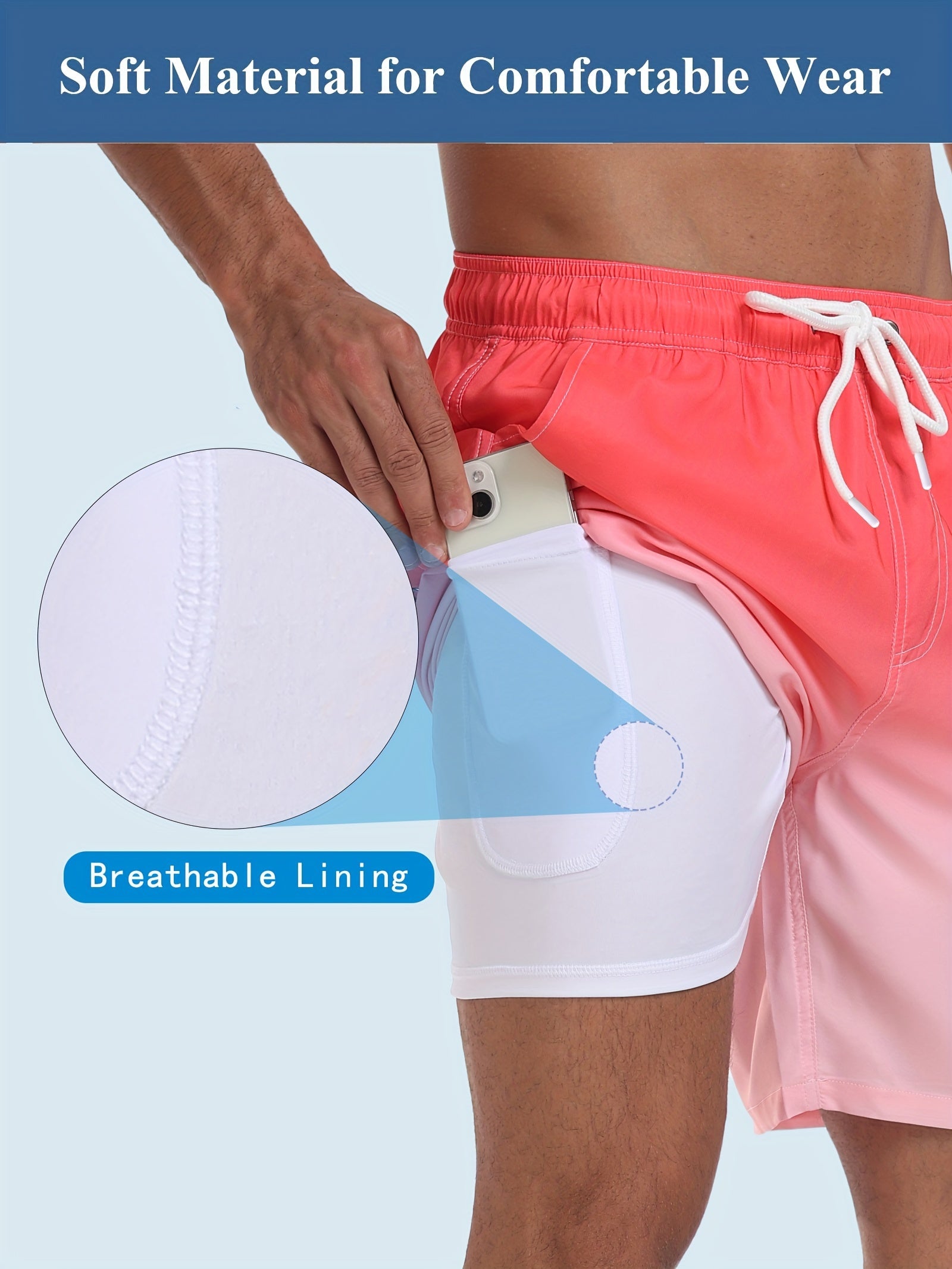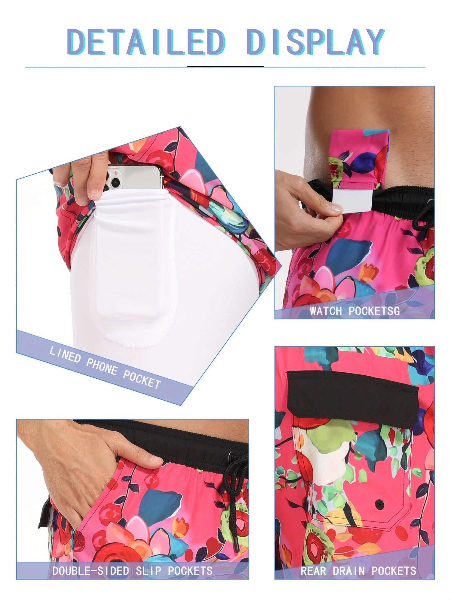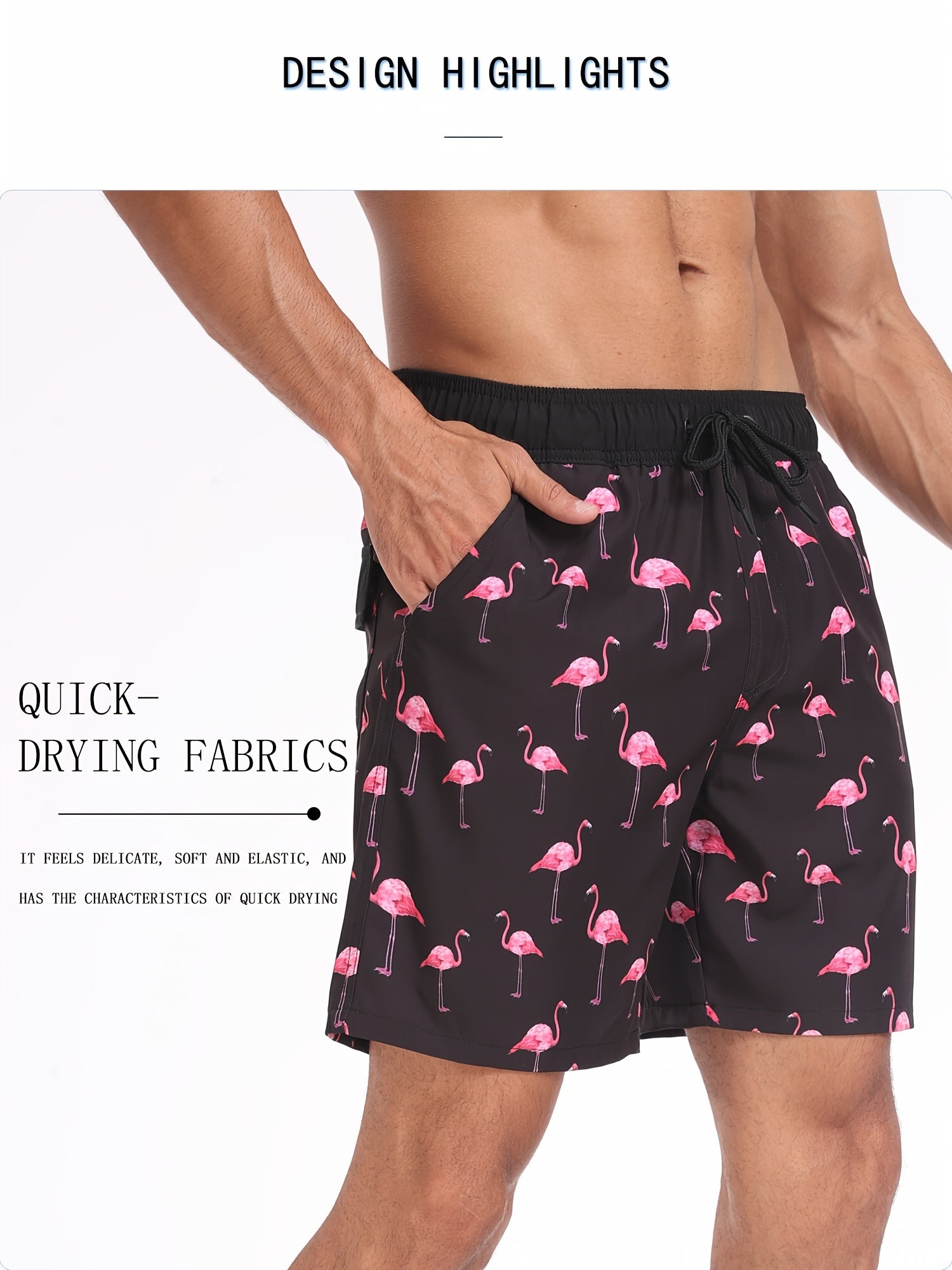 Men's Quick-Dry Beach Shorts with Tropical Palm Tree & Palm Leaf Print - Breathable Stretch Fabric for Summer, Outdoor, Hiking, Swimming - Machine Washable Casual Athletic Shorts, Outdoor Activewear, Summer Shorts