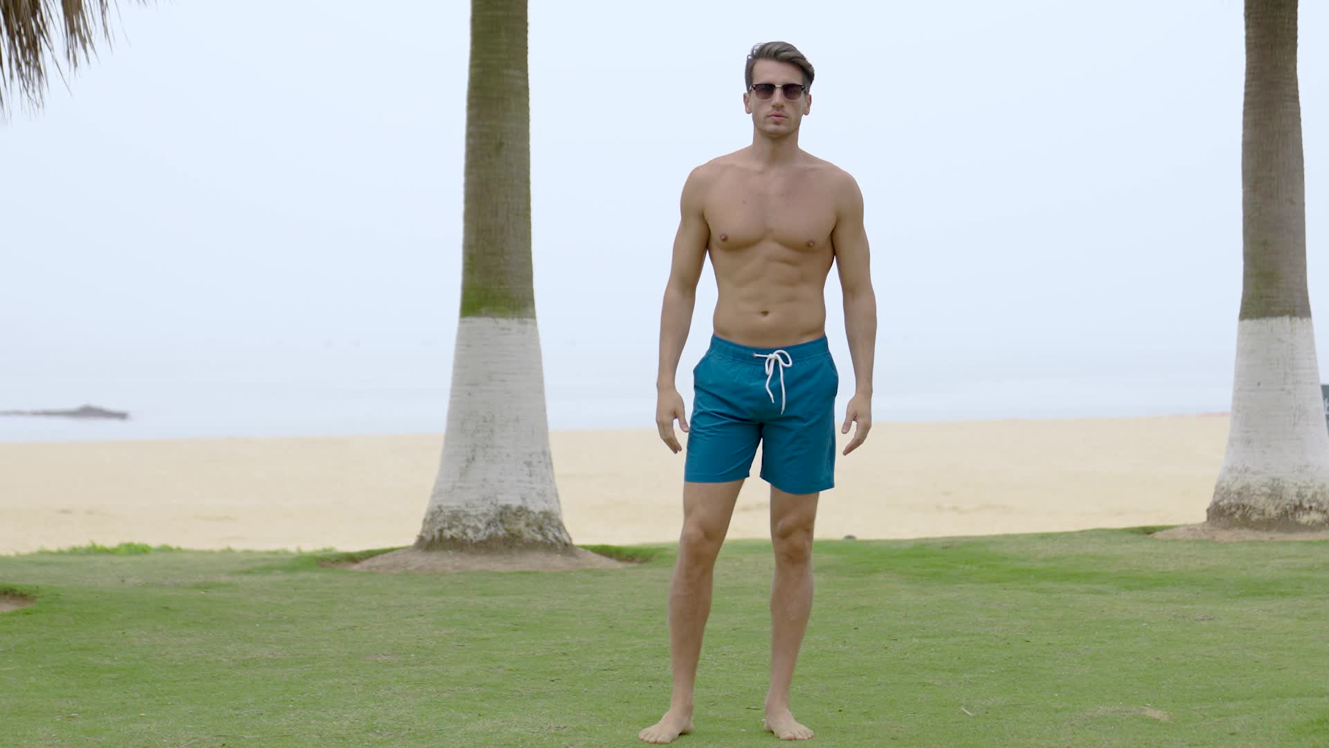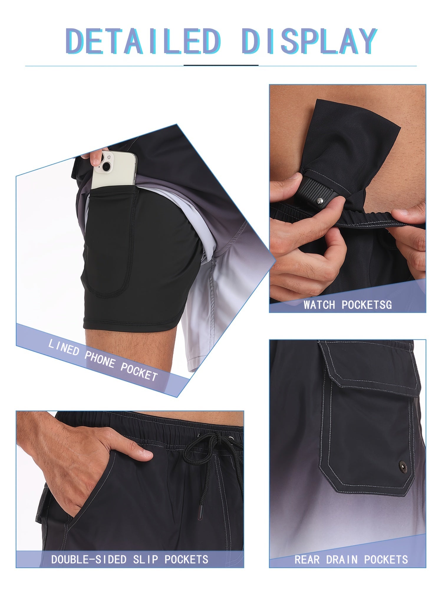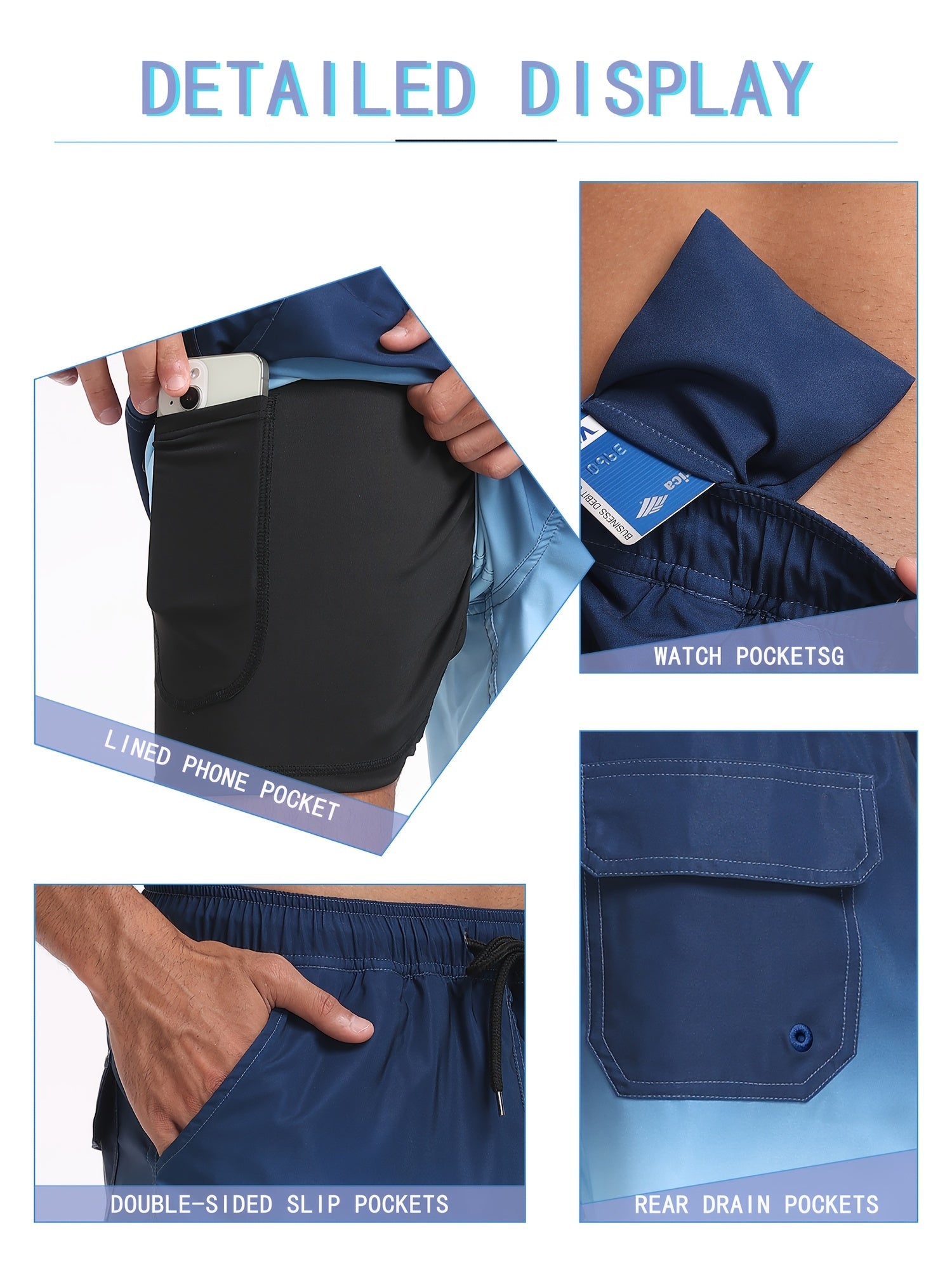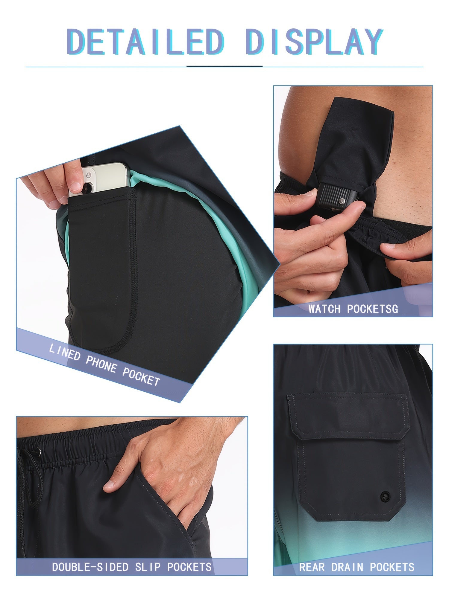 Men's Quick-Dry Beach Shorts with Tropical Palm Tree & Palm Leaf Print - Breathable Stretch Fabric for Summer, Outdoor, Hiking, Swimming - Machine Washable Casual Athletic Shorts, Outdoor Activewear, Summer Shorts