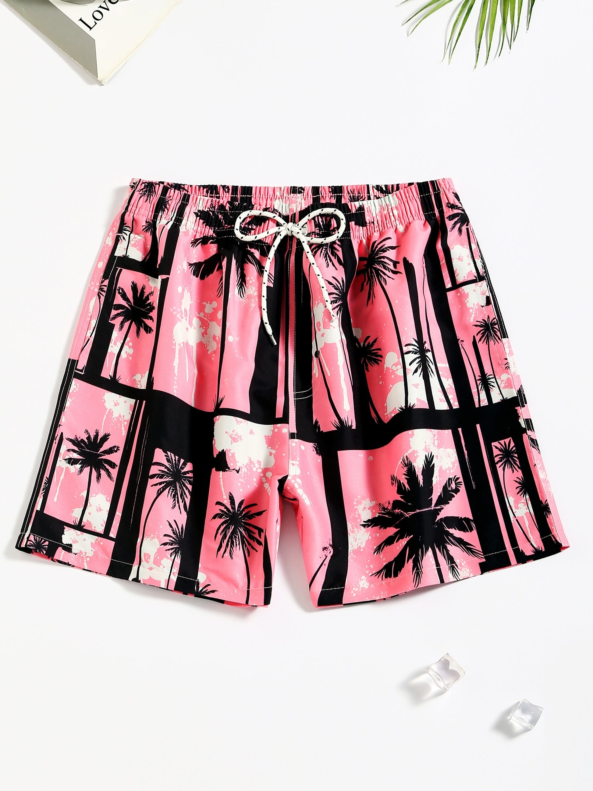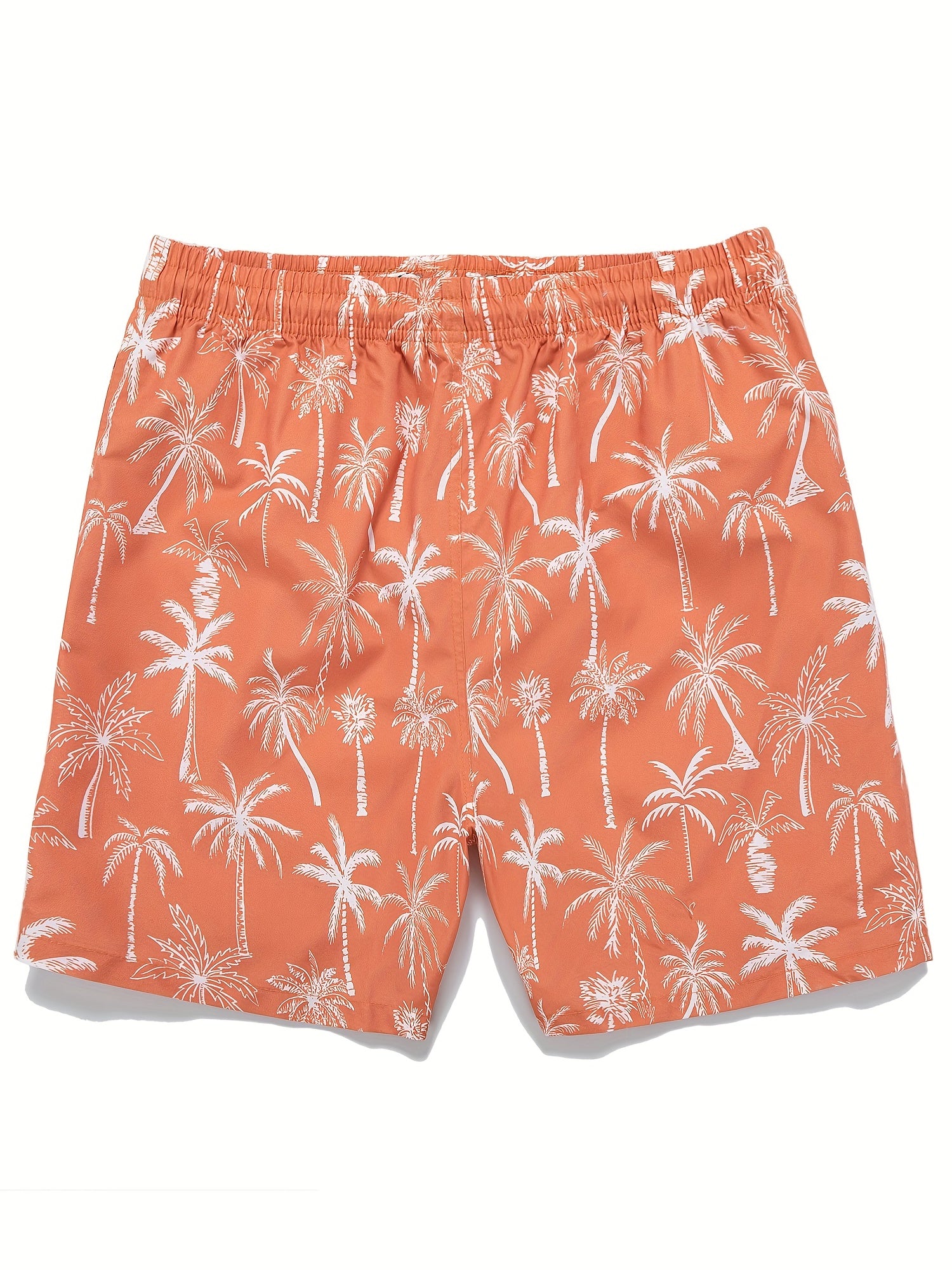 Men's Quick Dry Hawaiian Board Shorts With Pockets, Casual Coconut Tree Graphic Drawstring Swim Trunks For Summer Vacation Beach Pool Outdoor