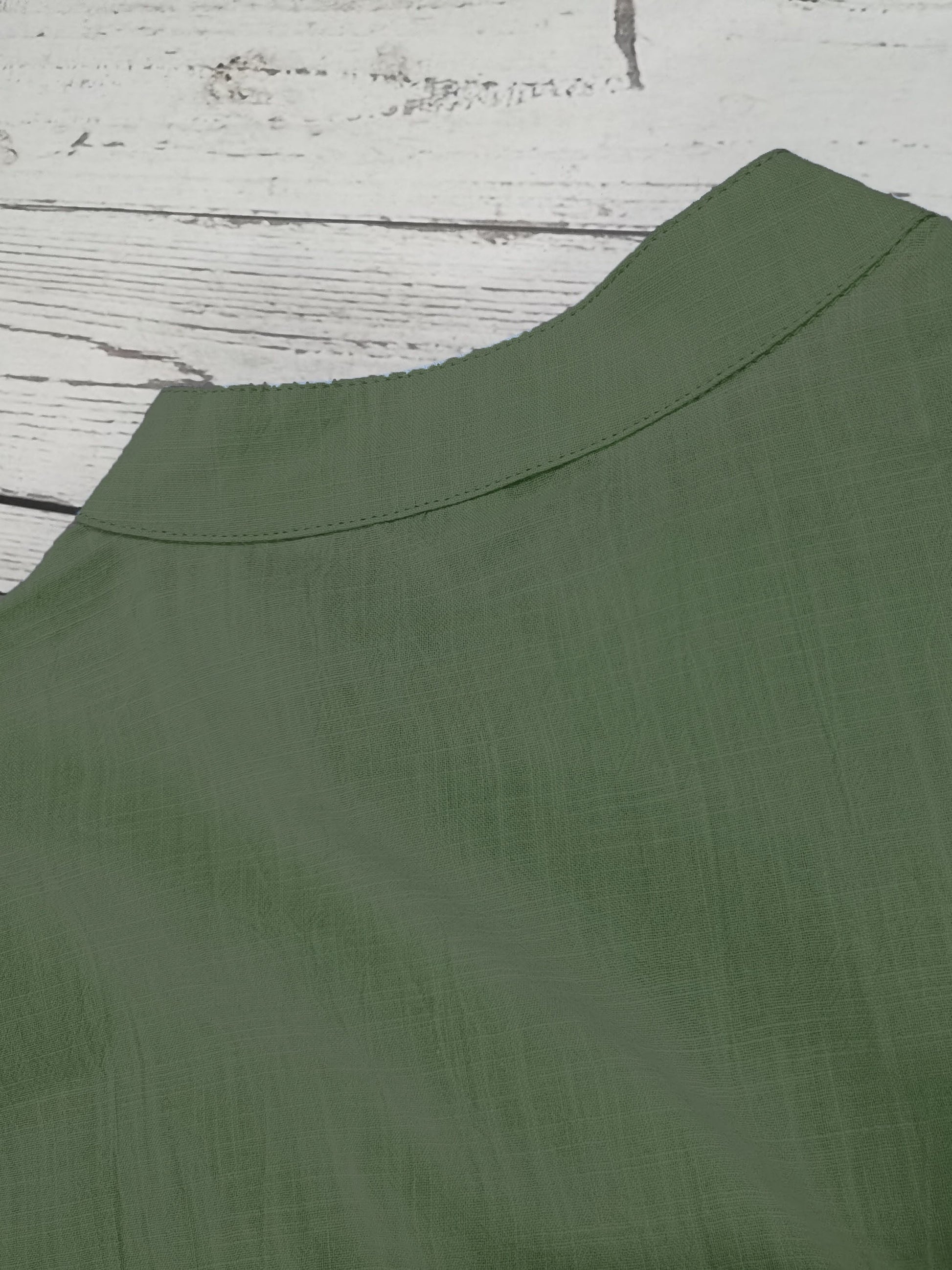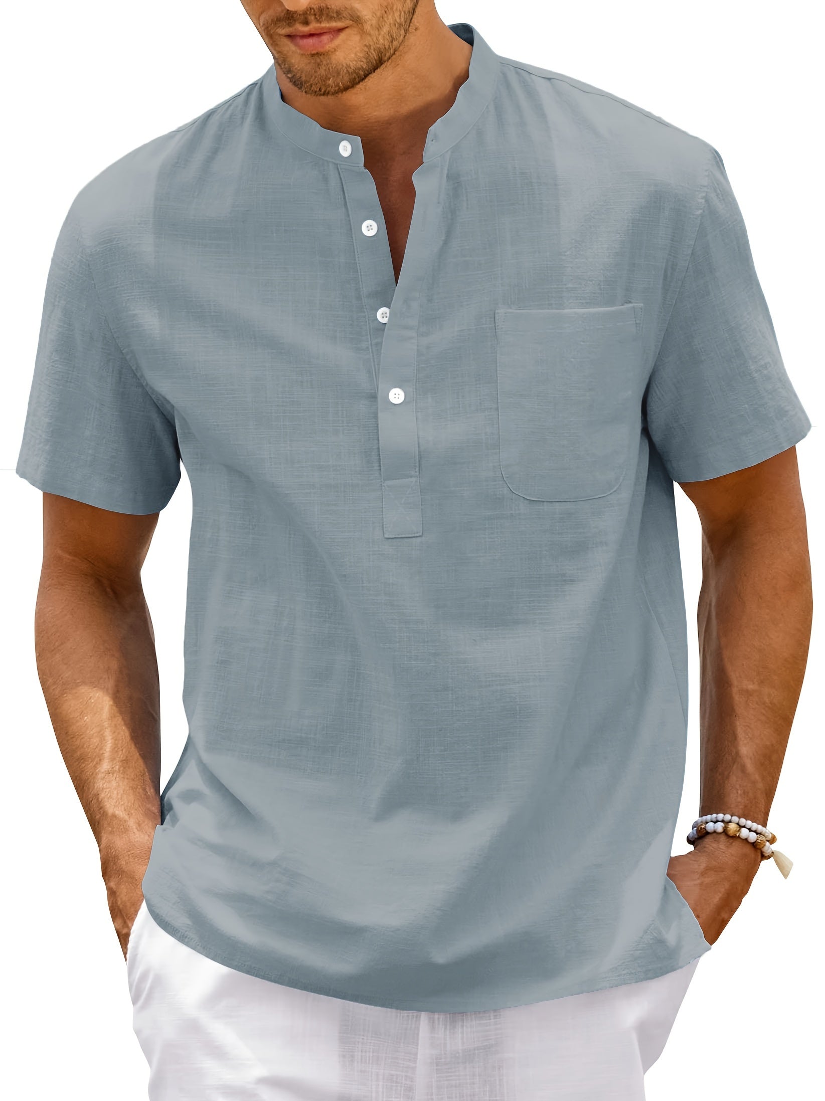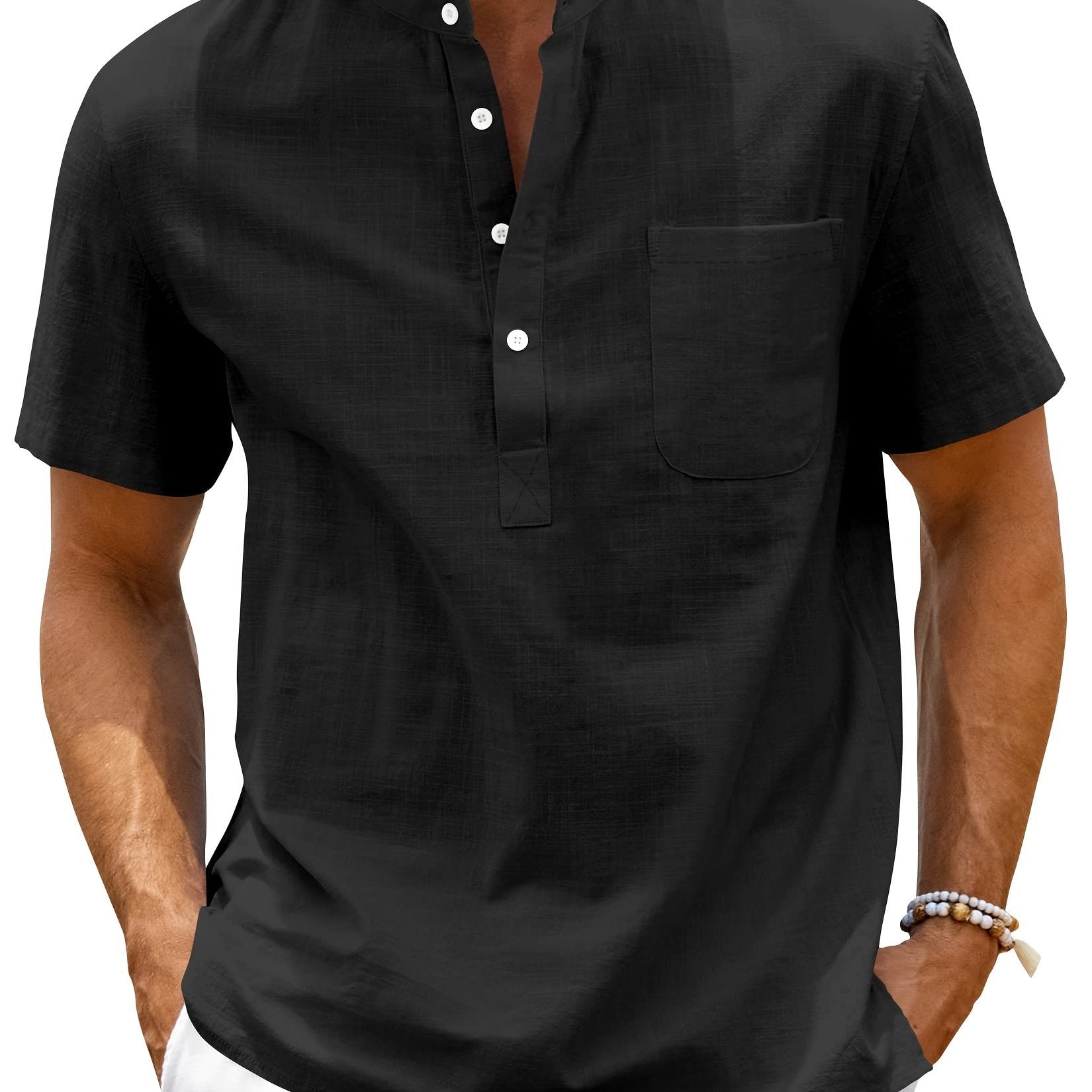 Men's Shirt Top, Solid Band Collar Short Sleeve Closure Summer Male Casual Henley Shirt For Daily Business Formal Shirts For Men