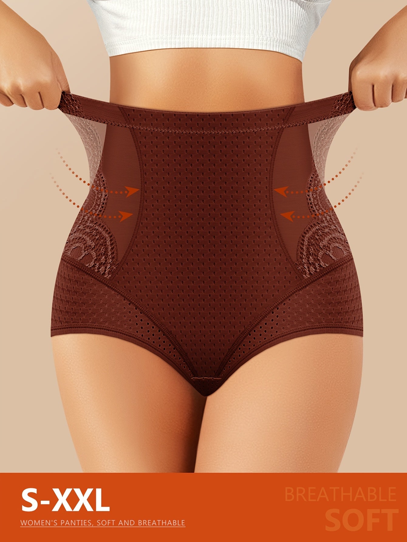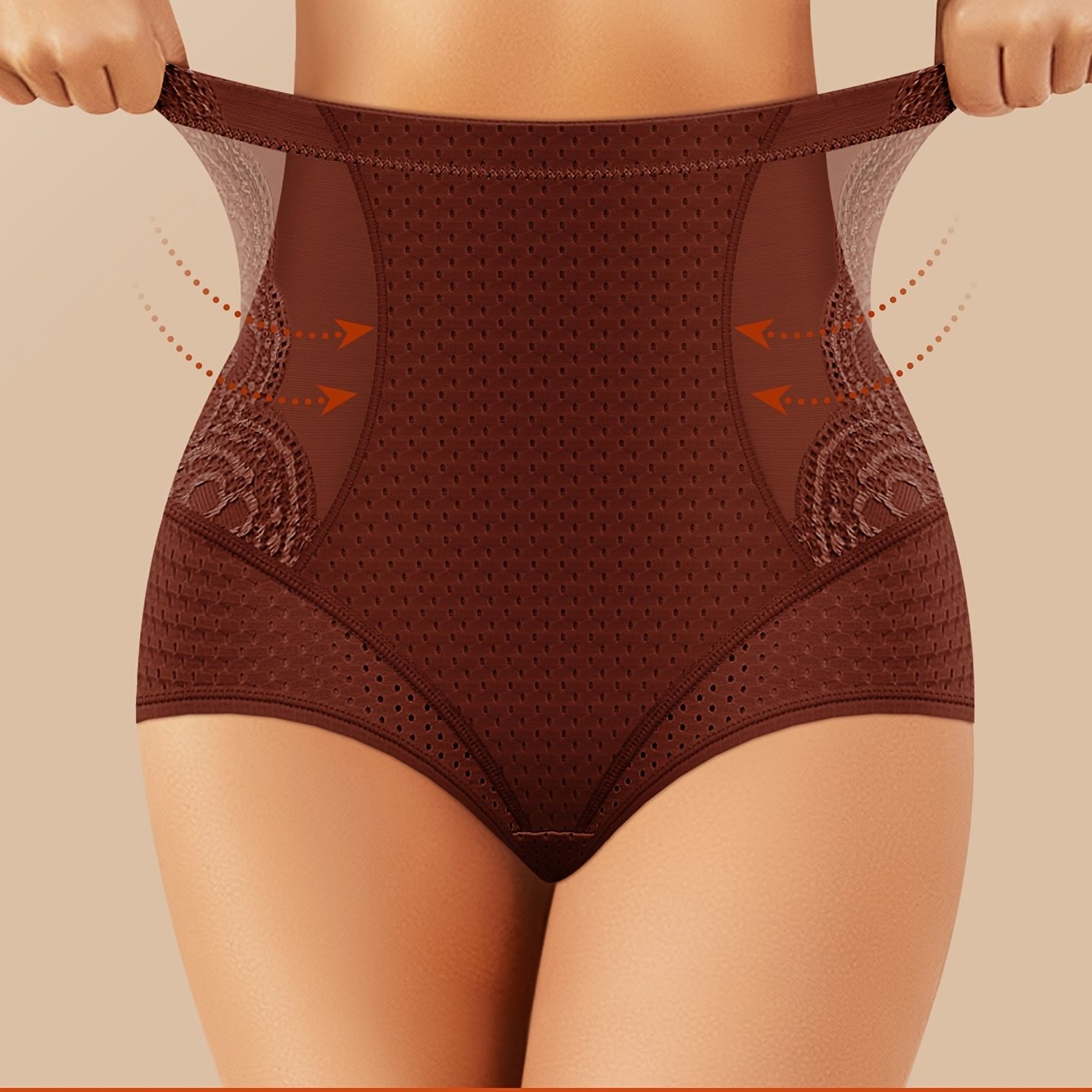 MIOTAN Women's High-Waisted Tummy Control Underwear - Tuck & Lift Butt Lifting Shaping Panties, Breathable All-Season Solid Color Triangle Briefs (No Bulk), High Elegant Everyday & Special Occasion Panties for Sensitive Beige