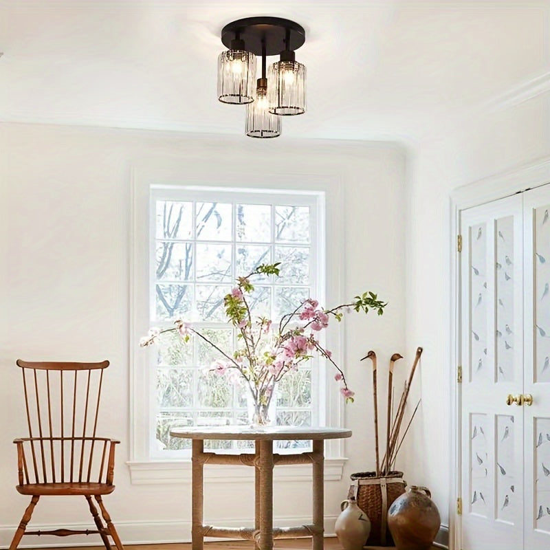 Modern 3-Light Semi-Flush Mount Crystal Chandelier - Metal Ceiling Light Fixture with Glass Shades for Dining Room, Foyer, Hallway, Kitchen Island, Office - E27 Bulb Base, Hardwired (Bulbs Not Included)