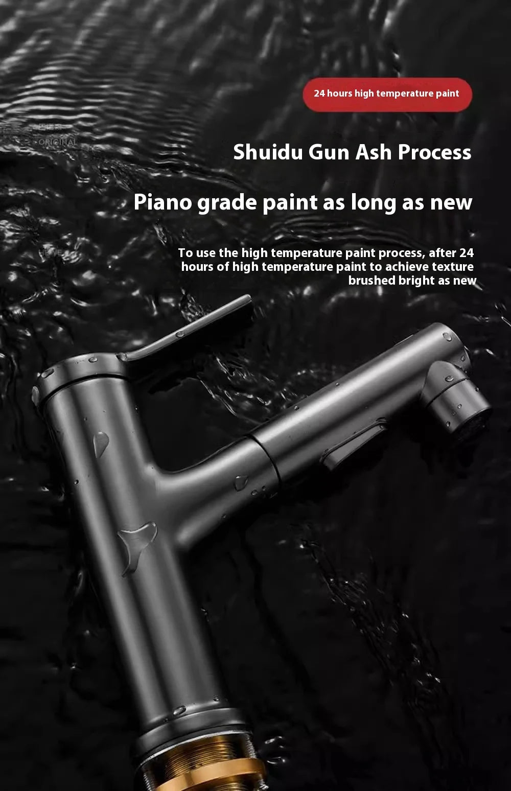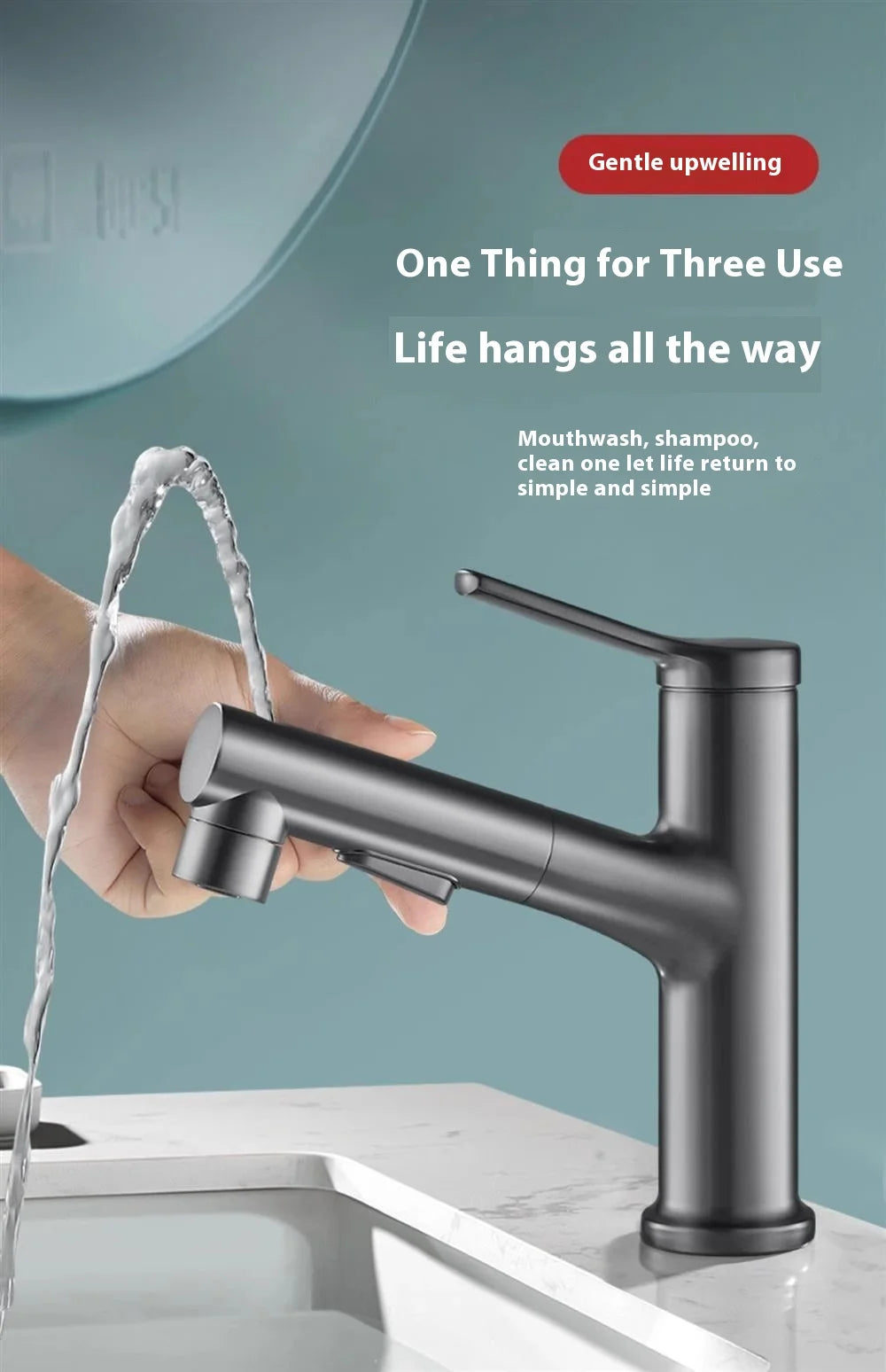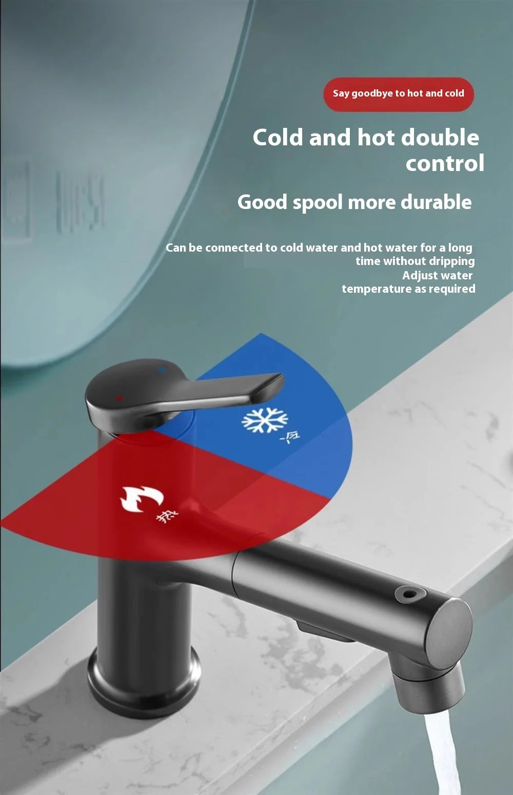 Modern All Copper Pull-Out Basin Faucet Hot Cold Single-Handle Design for Household Washbasin Bathroom Cabinet Toilet Wash Basin