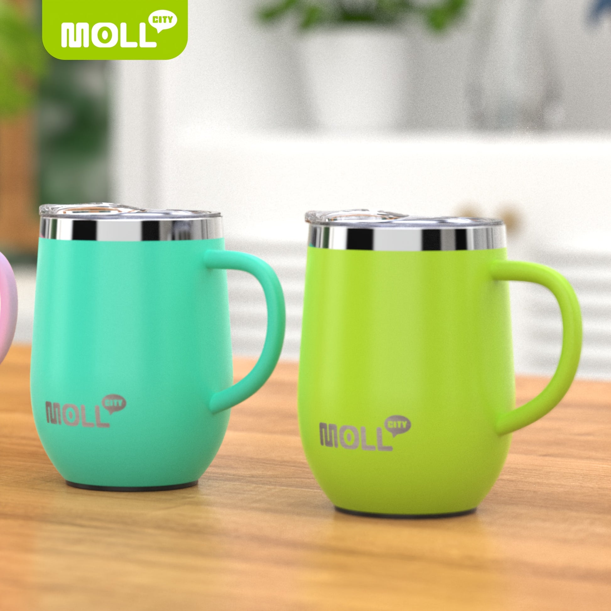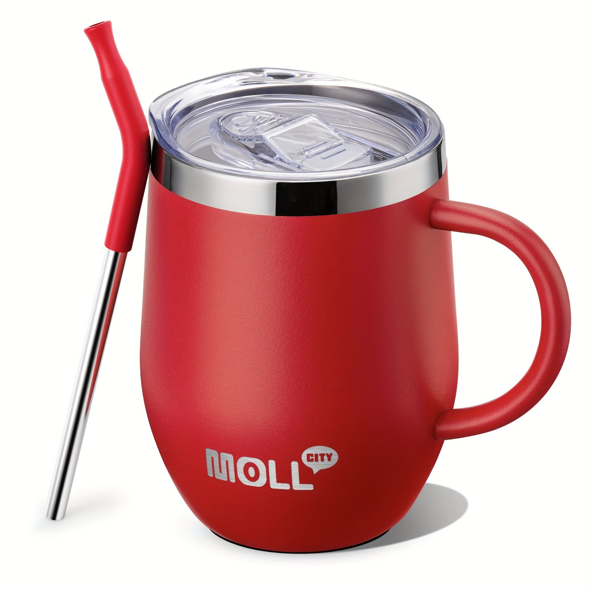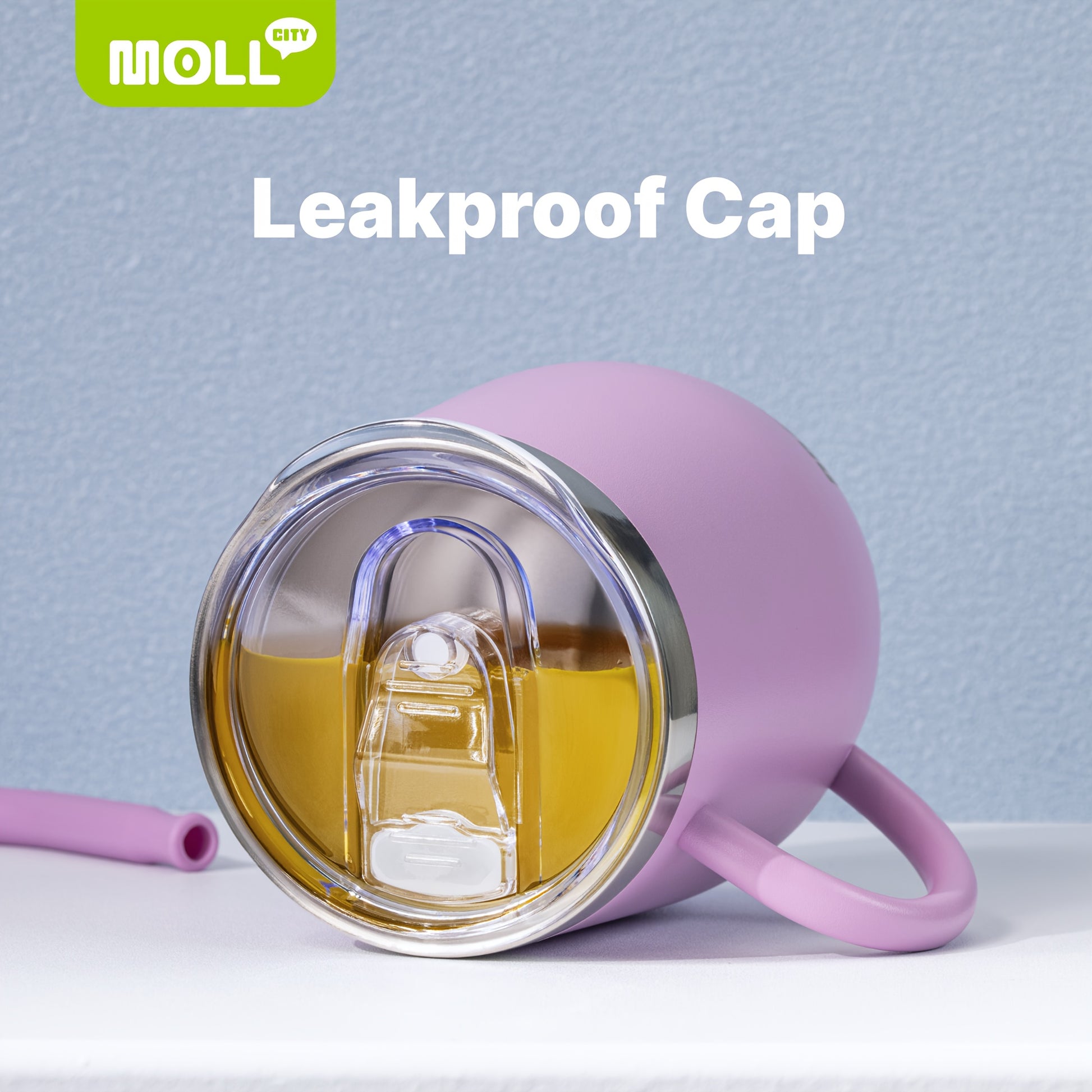 Mollcity 12oz Stainless Steel Tumbler with Straw & Spill-Proof Lid - Double-Wall Vacuum Insulated Cup, Pastel Pink ( purple), Leakproof Travel Mug, BPA-Free, Non-Slip Base & Ergonomic Handle for Women, Office, Gym, Outdoor -