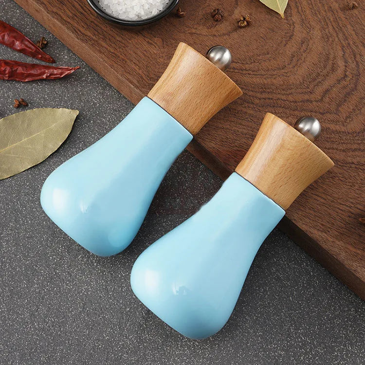 New Product Wood Salt and Pepper Grinders Set Blue Kitchen Spice Mill with Adjustable Coarseness Ceramic Core