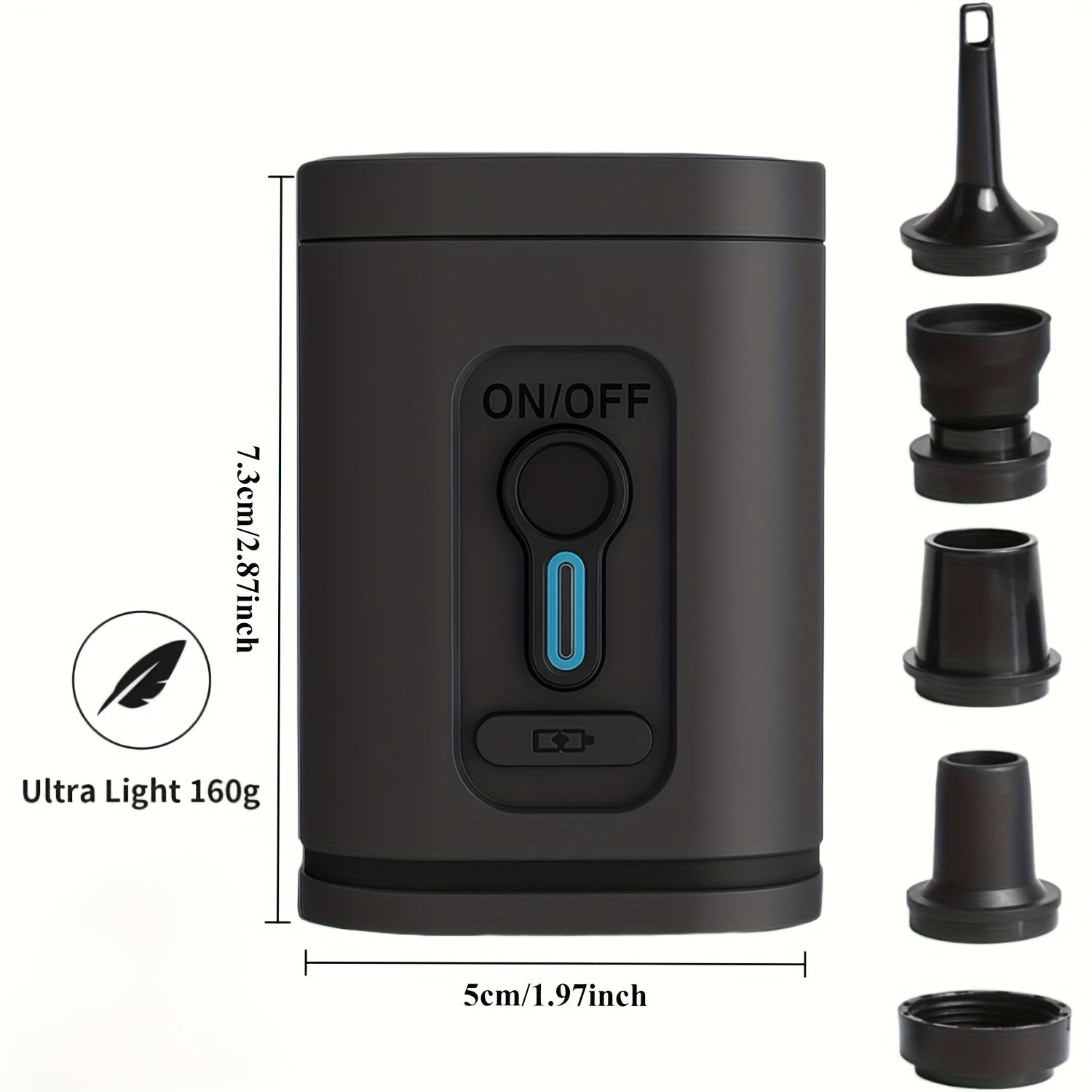 Outdoor Camping Electric Inflatable Pump, Portable Air Pump for Vacuum Compression Bags, Inflatable Sofa, Air Mattress, Boat, Swimming Ring Mini Quick Charge Black Version, USB Rechargeable Battery with 5 Nozzles., 30W