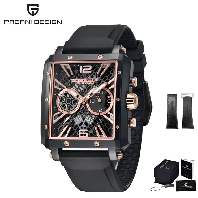 PAGANI DESIGN 2022 New Rectangular Watches for Men Top Brand Men's Sports Quartz Watches Skeleton Automatic Date Chronograph