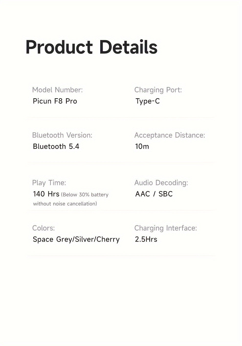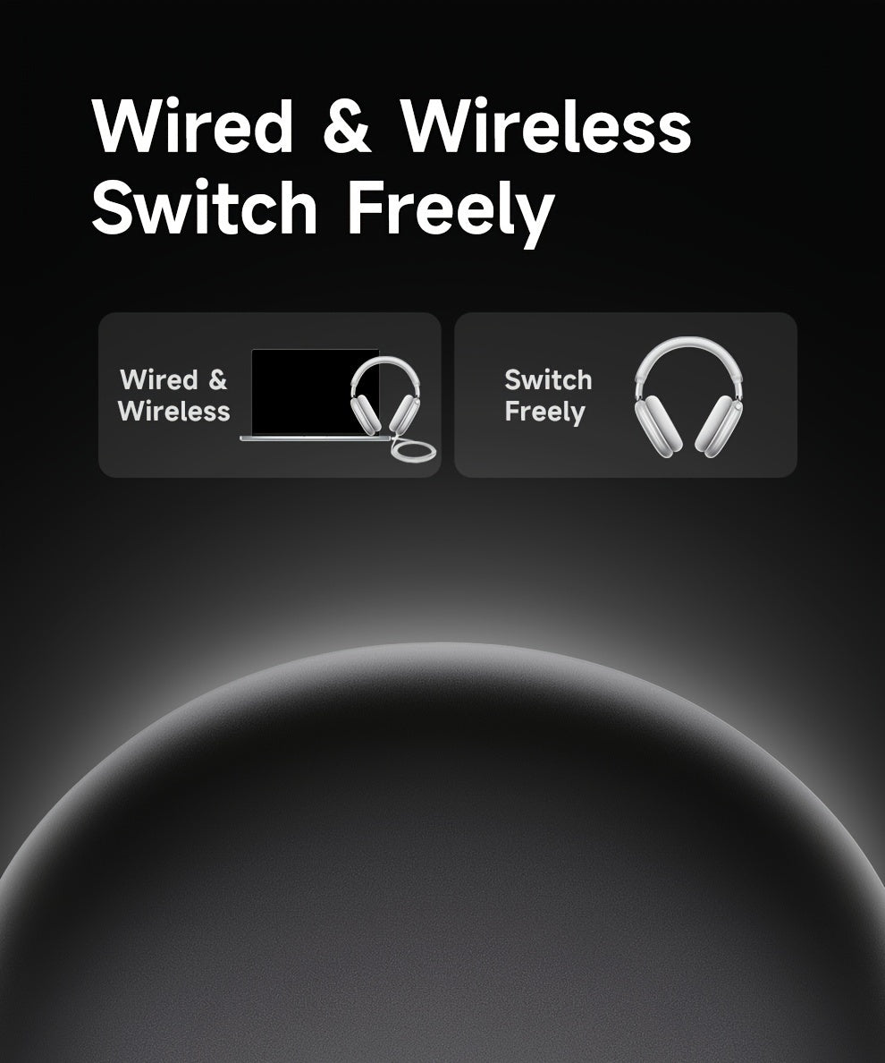 Picun F8 Pro Wireless Over-Ear Headphones with 52dB Hybrid ANC, Hi-Res Audio, Detachable Fabric Ear Cushions, Smart 5-Mic ENC, 140-Hour Standby, and Seamless Dual-Device Connectivity, Black, Wireless Headphones, Modern Headph
