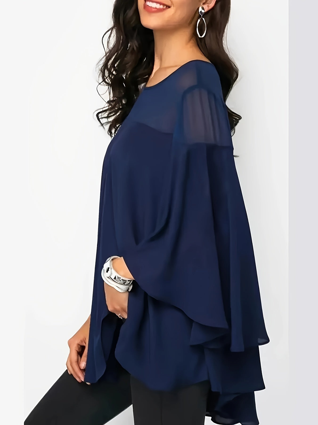 Plus Size Asymmetrical Hem Blouse, Casual Solid Crew Neck Blouse For Spring, Women's Plus Size Clothing