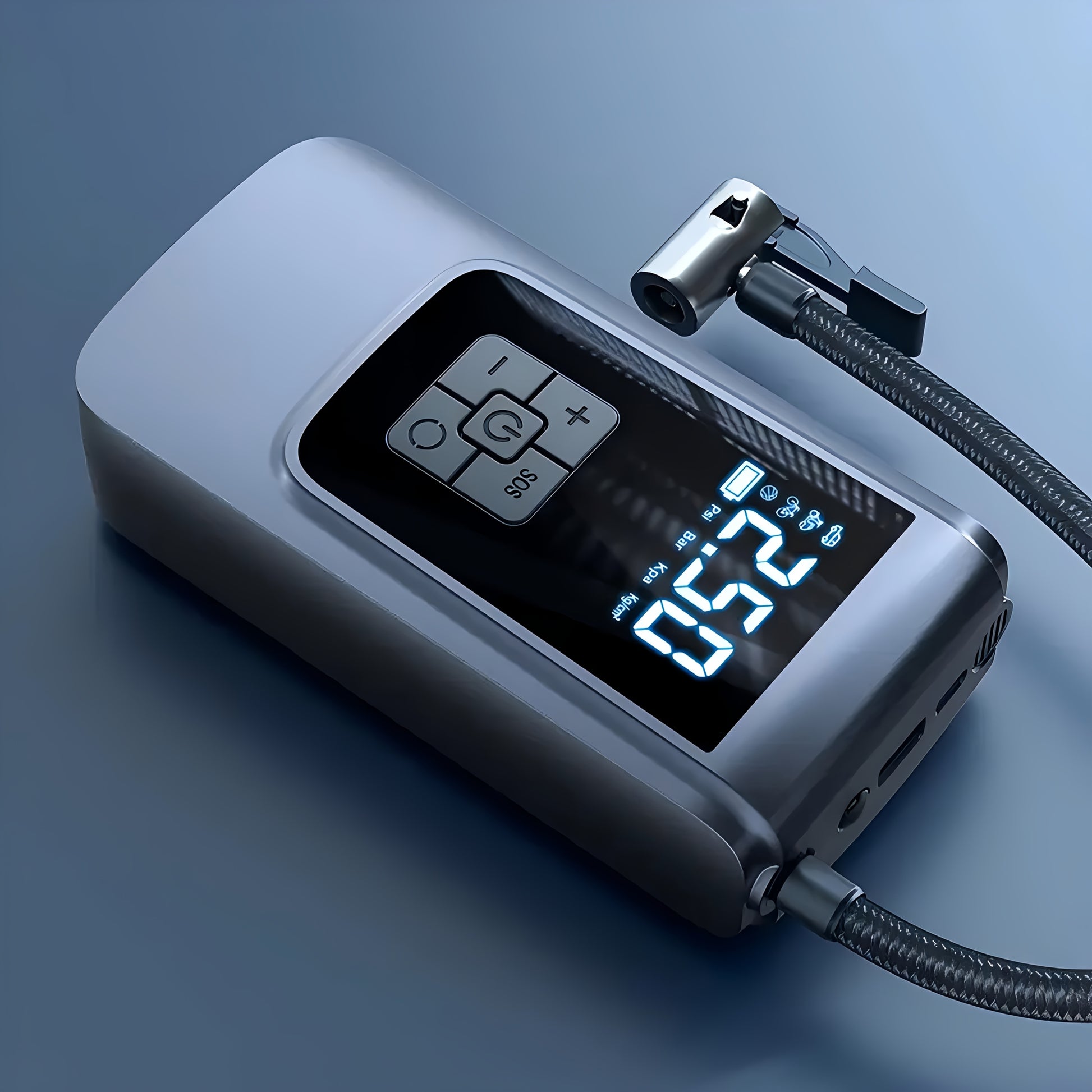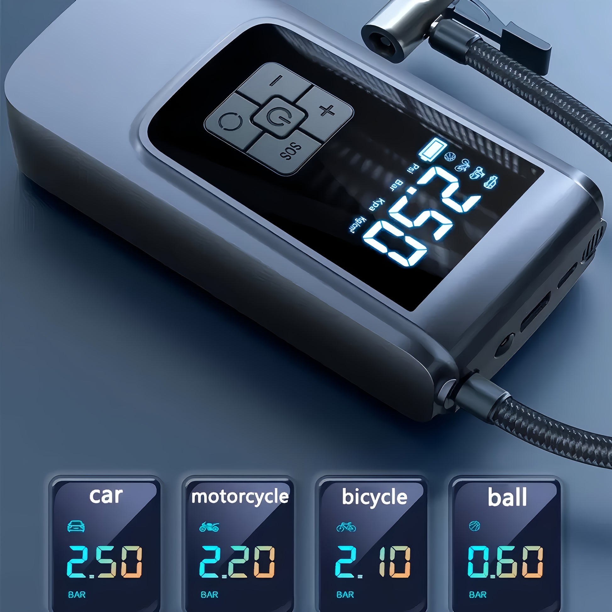 Portable Tire Inflator Air Compressor with Pressure Gauge - 150PSI Electric Pump with LED Flash Screen, 2000mAh Rechargeable Lithium Battery, USB Charging, for Cars, Motorcycles, Bicycles, Balls