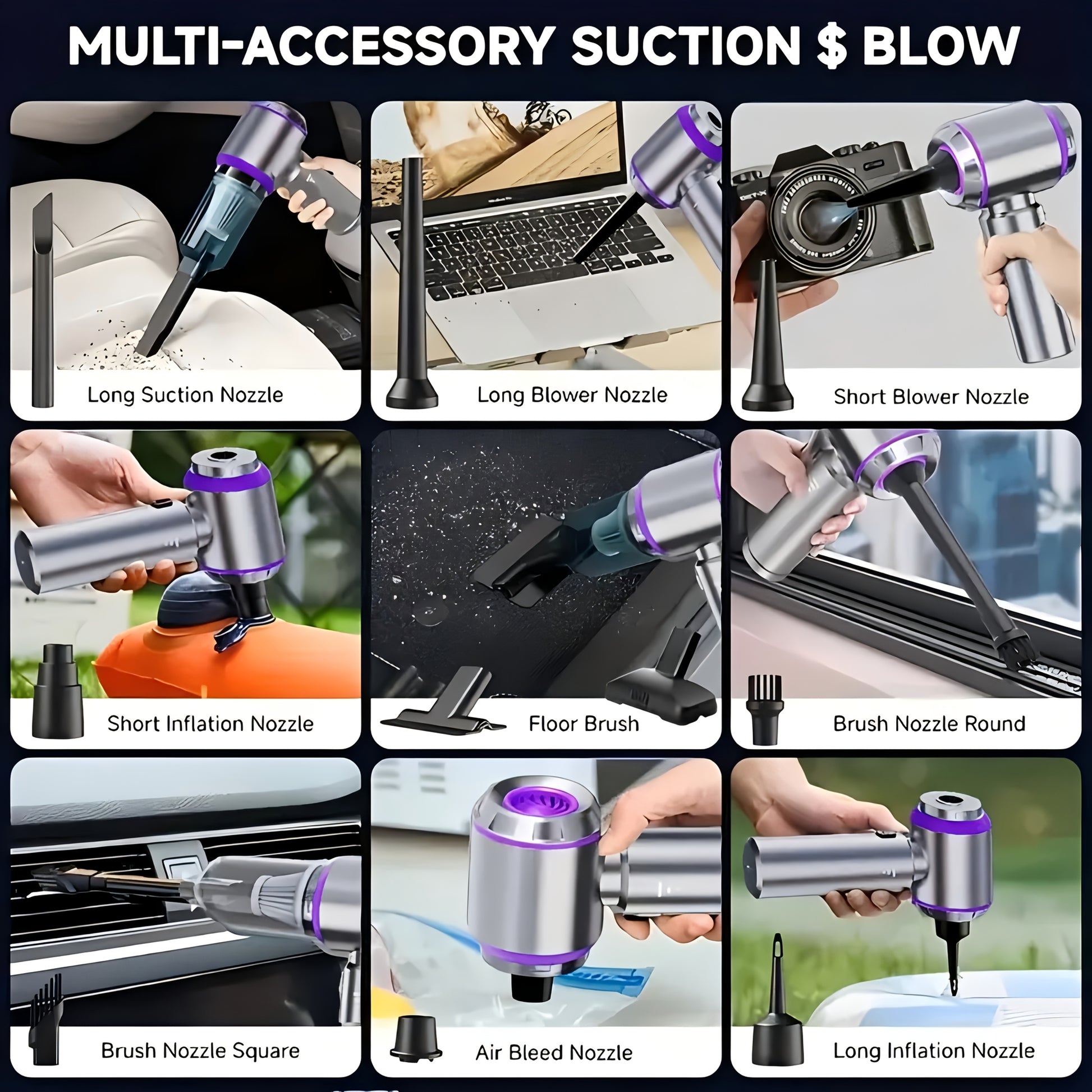 Portable Wireless Vacuum Cleaner 20000PA High-Power Mini Vacuum, 4-in-1 Compressor Air Blower and Pump Handheld Vacuum with Brushless Motor Suitable for Car, Home, Office, Camping, Computer Keyboard Laptop Dust Cleaning Tool