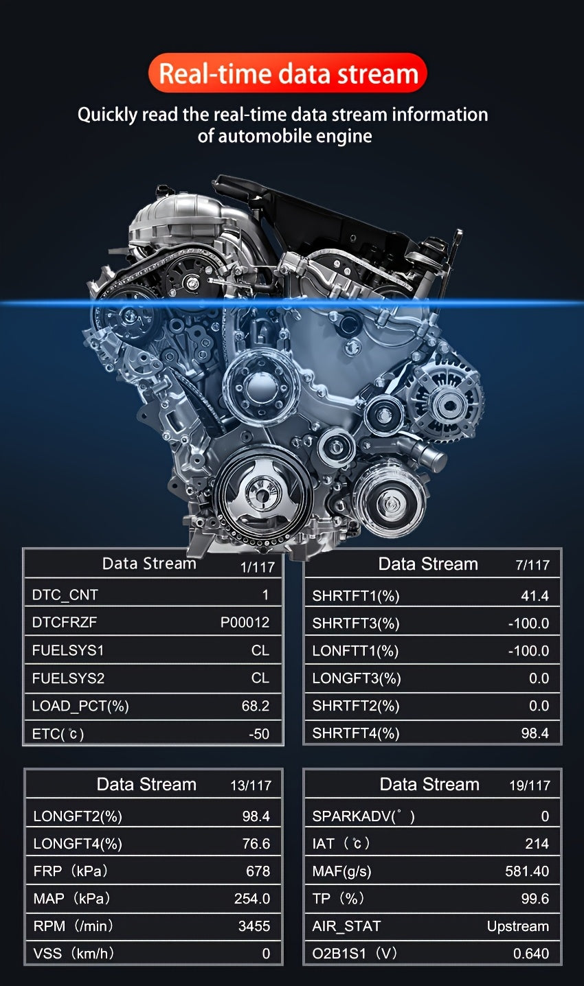 Professional OBD2 Car Scanner Diagnostic Tool - Suitable for Reading Vehicle Codes, Clearing Fault Codes, 35901 Trouble Code Library, Real-Time Data Stream, Oxygen Sensor Tester, Battery Voltage Reading, Mode 6/8 Detection