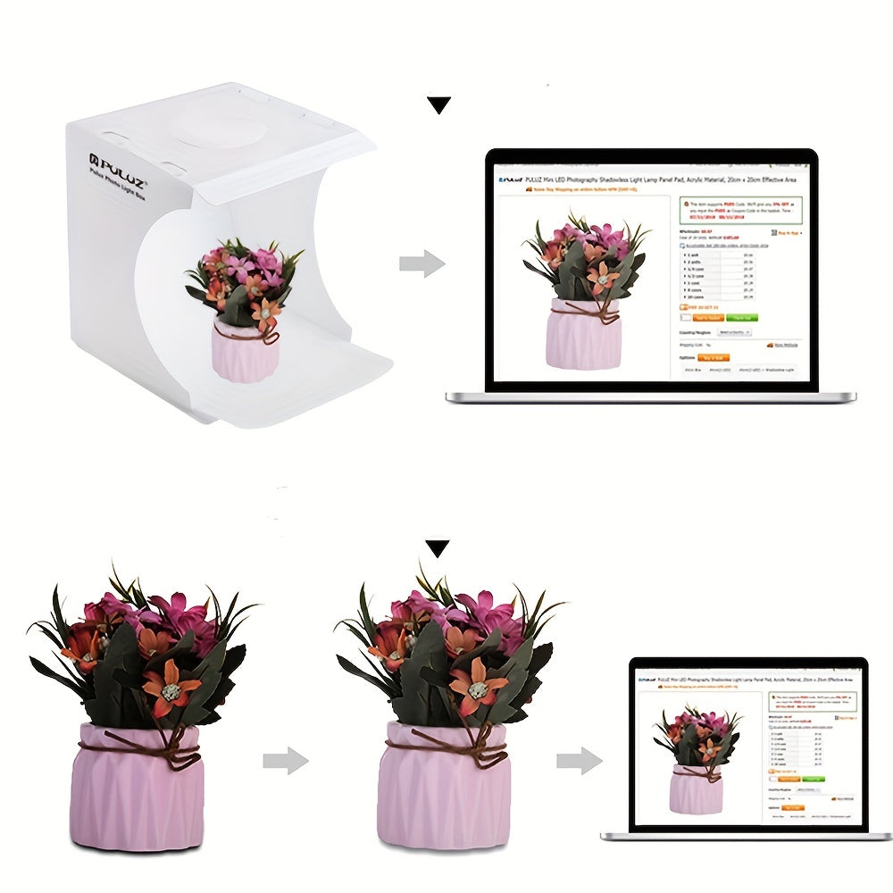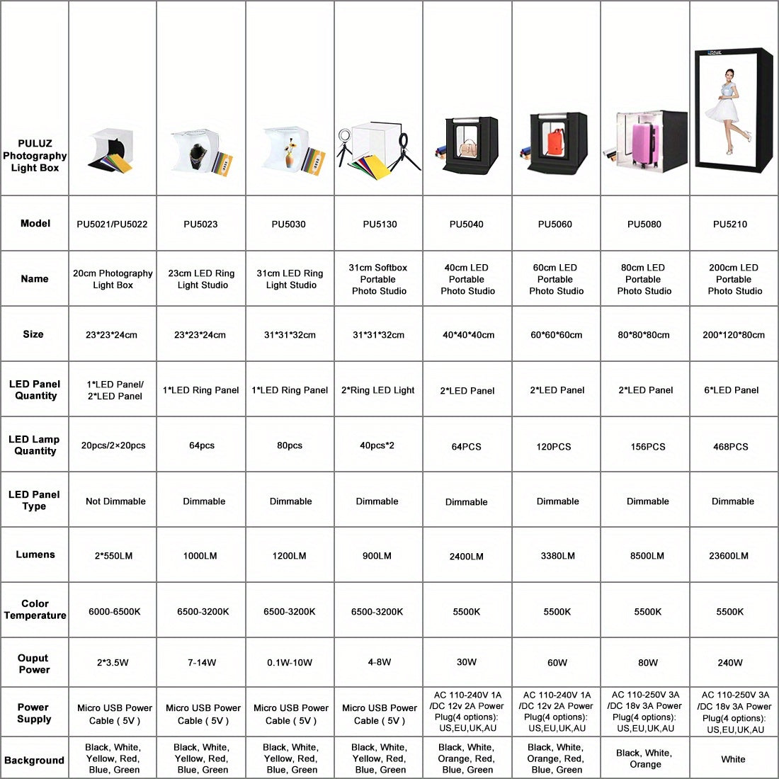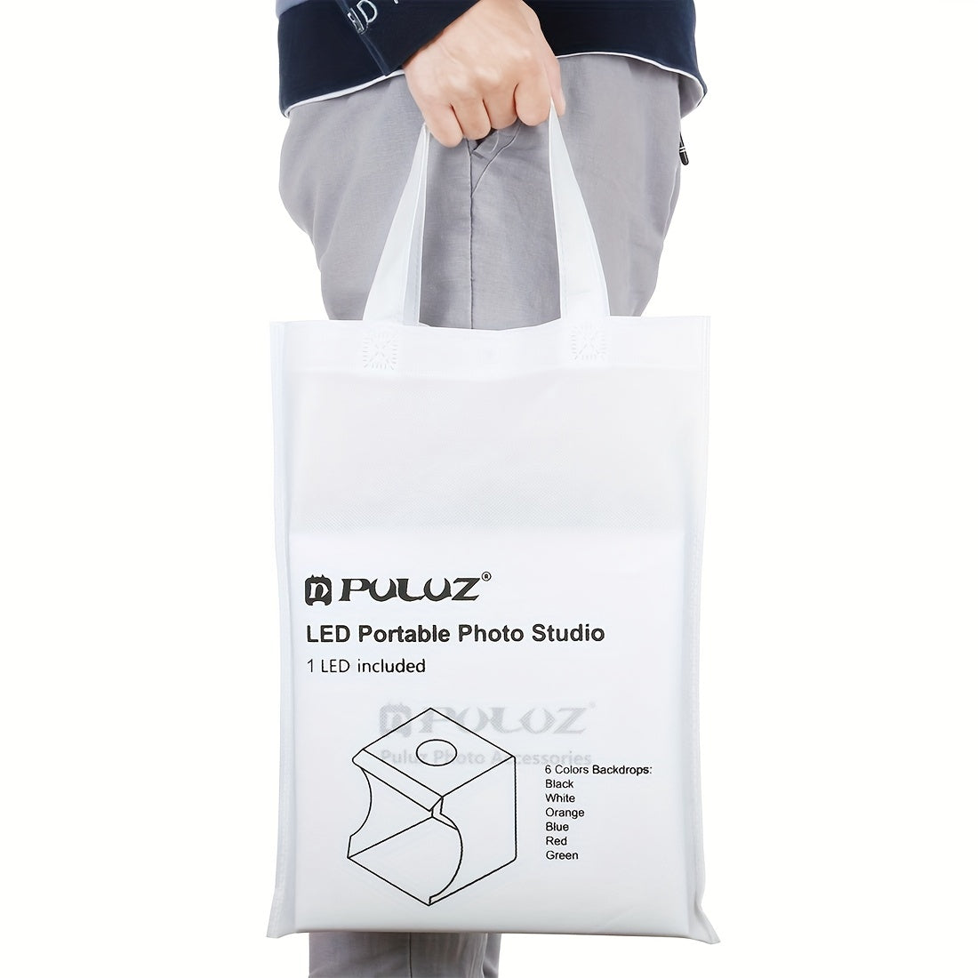 PULUZ Photo Light Box, Folding Portable Photography Shooting Light Tent Kit, Photo Studio 550LM Box, White Lighting Softbox With 1 LED Lights + 6 Color (Black/White/Orange/Red/Green/Blue) Backdrops Fabric For Product Display