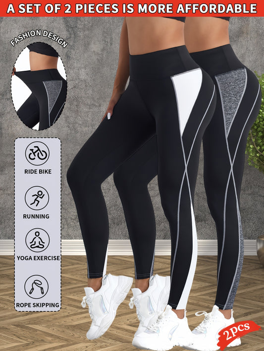 2pcs Women'S High-Waisted Yoga Pants - Side Stripe, Outdoor Sports Tights, Butt-Lifting Tummy Control Leggings, Comfortable Breathable Wide Waistband