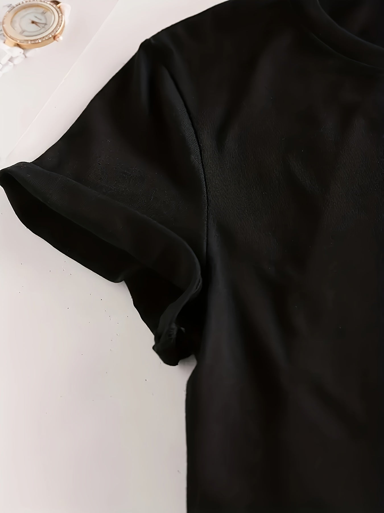 Rainbow Heart & Letter Print T-shirt, Versatile Short Sleeve Crew Neck Top, Women's Clothing