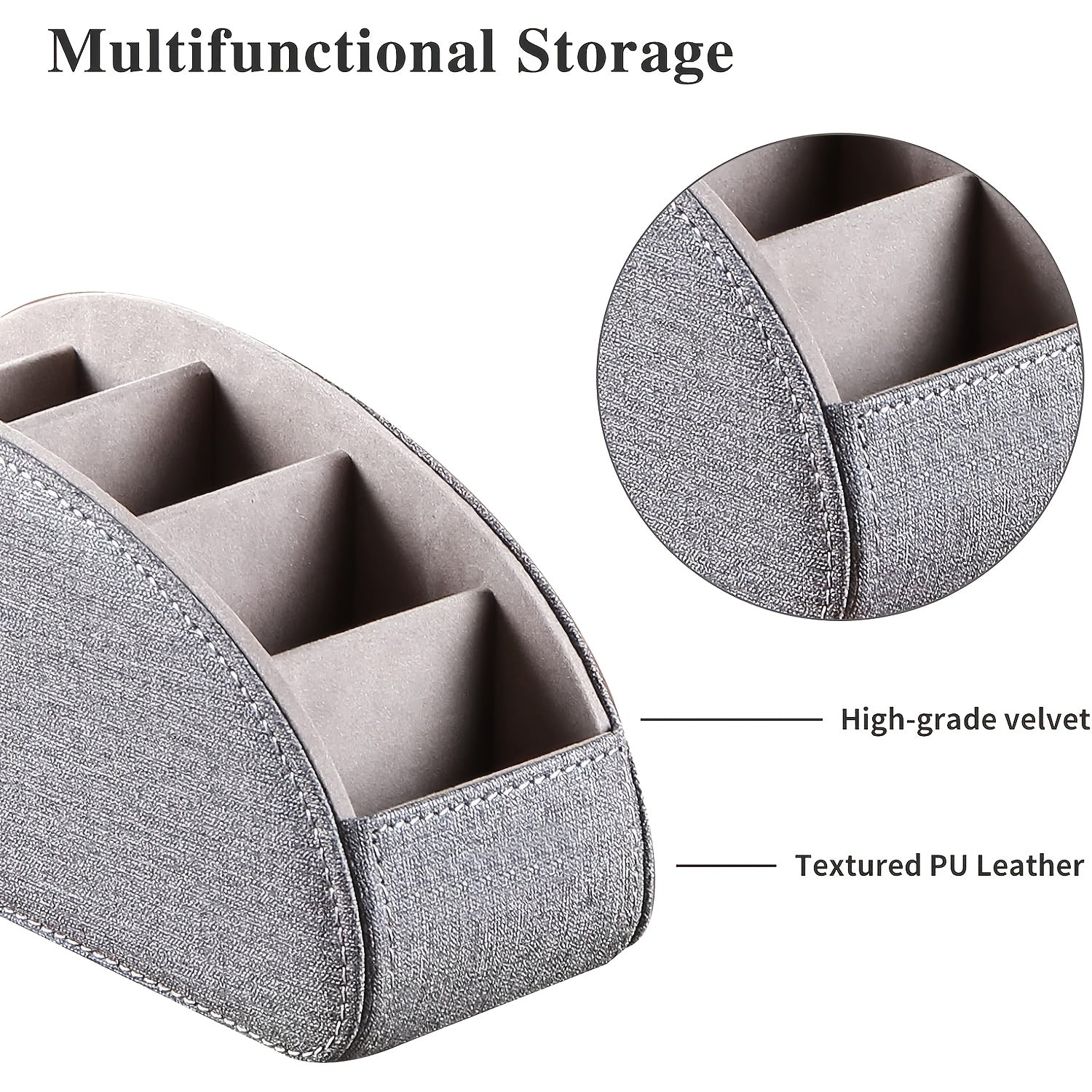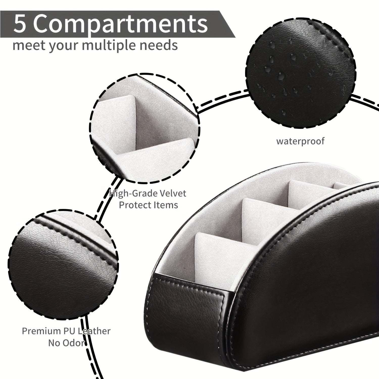 Remote Control Holder with 5 Compartments, PU Leather Multifunctional Desktop Storage Box/Remote Caddy/Pen Holder/Multi-Scene Practical Desk Organizer Shelf for Appliance Controllers, Stationery, Eyeglasses, Brushes, Office S