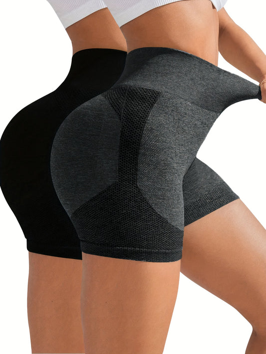 2pcs Women'S High-Waisted Seamless Workout Shorts - Butt-Lifting Tummy Control Yoga Pants with Butt Lift & Tummy Control, Full-Length Leg Design, Solid Color (/navy) For Gym, Fitness, Yoga - Machine Washable, Workout Clothes,
