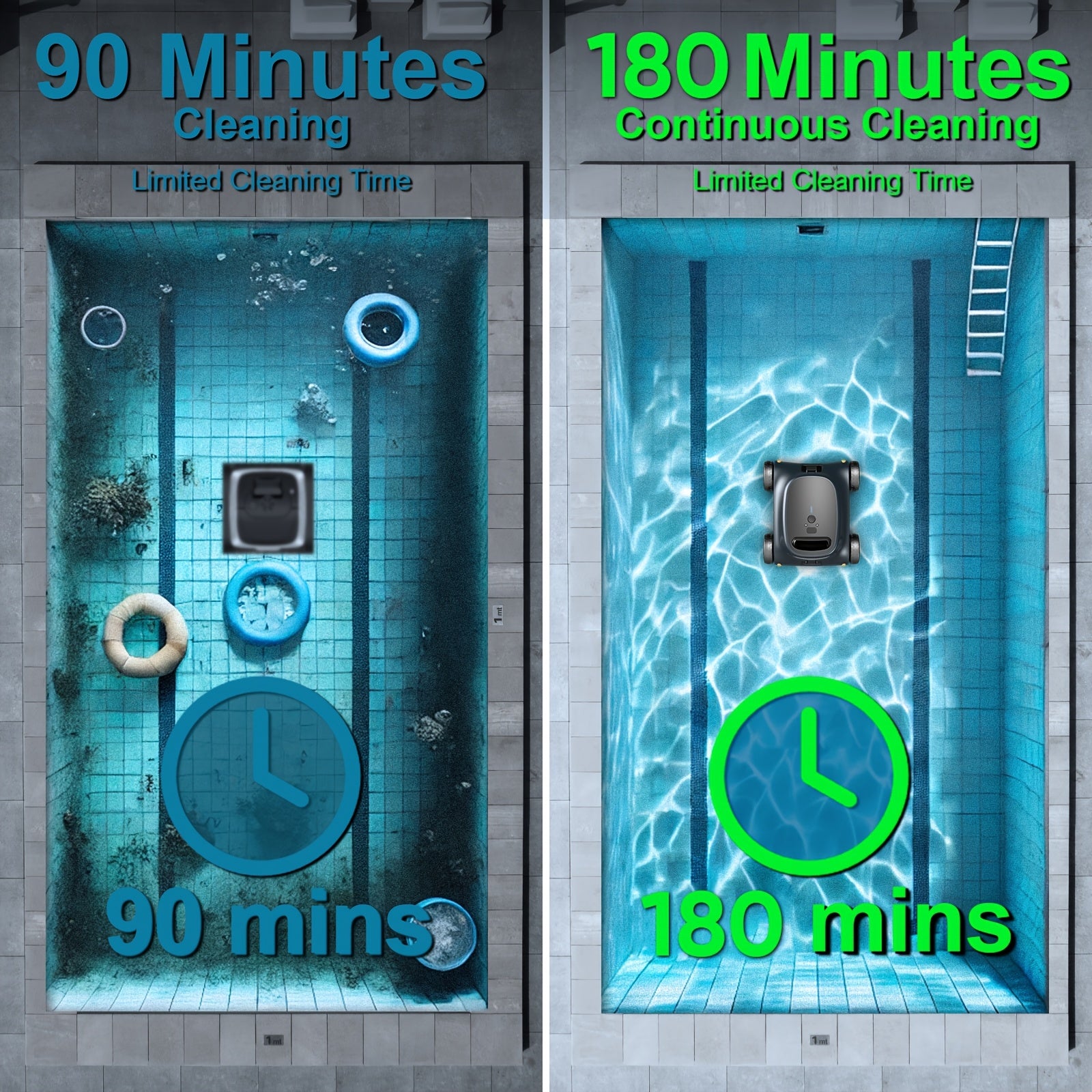 Seauto Robotic Pool Vacuum 180 Mins Running Up to 2000 Sq.ft, 180W Brushless Motor, 45, 000 Pa Powerful Suction for Above Ground Pool and In Ground Flat Pools