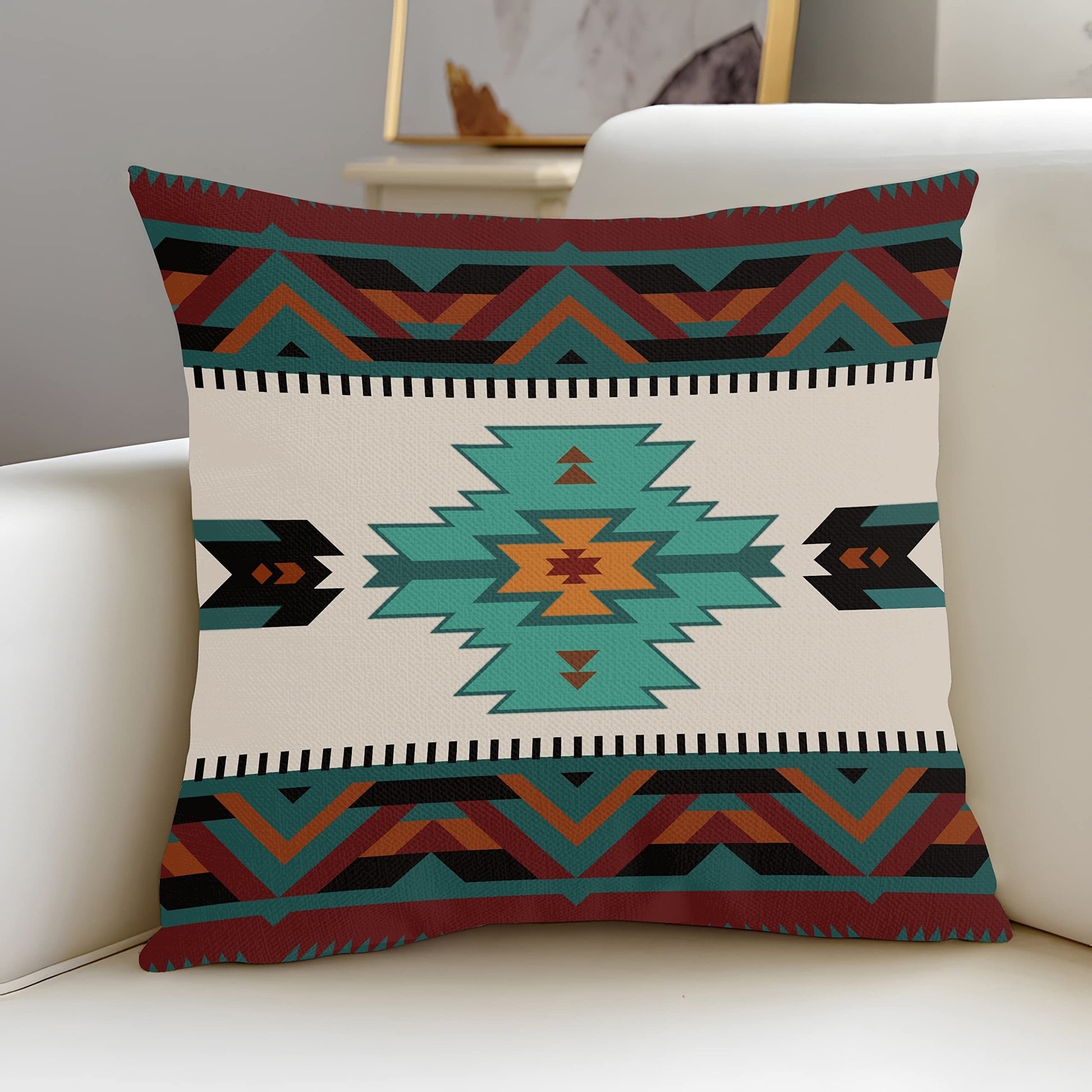 Set Of 4 Western Throw Pillow Covers Aztec Southwestern Native American Tribal Geometric Pillow Cases Turquoise Rustic Decorative Couch Cushion Covers For Outdoor Bedroom Home Decor, 45.72x45.72 Cm (Cushion Is Not Included)