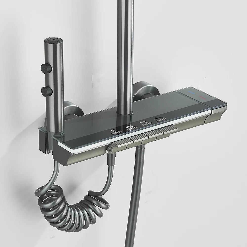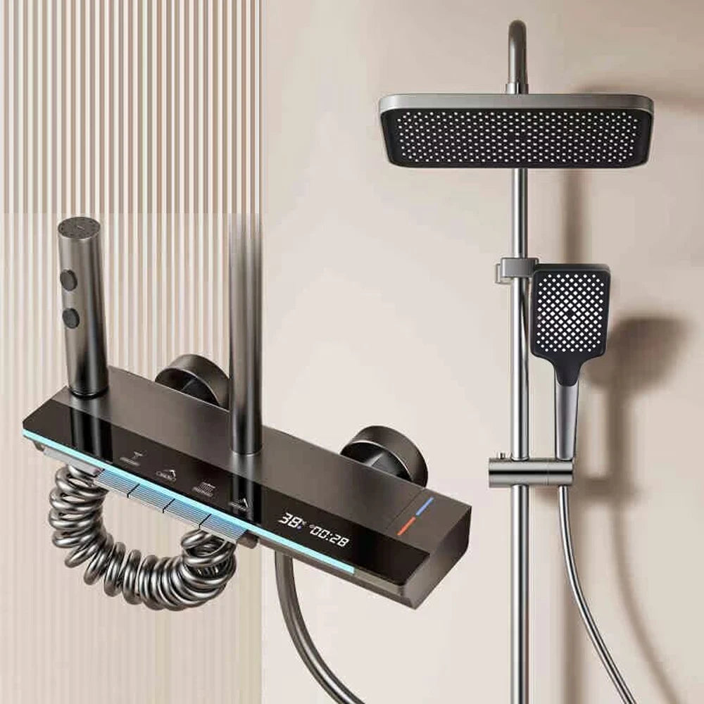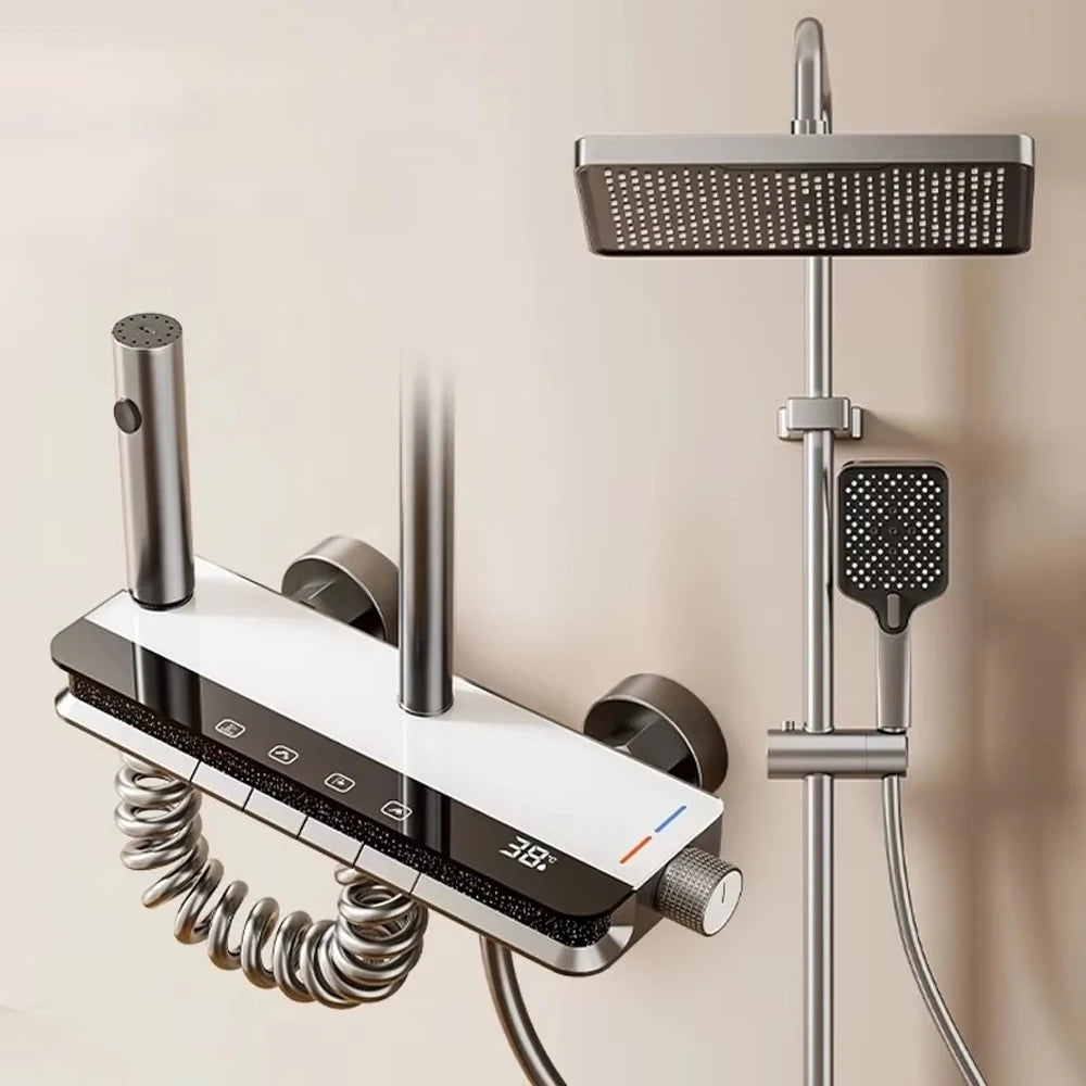 Shower System Bathroom Shower Set Bathtub Hot And Cold Shower Faucet LED Light Digital Display Brass Faucet Piano Key Shower Set