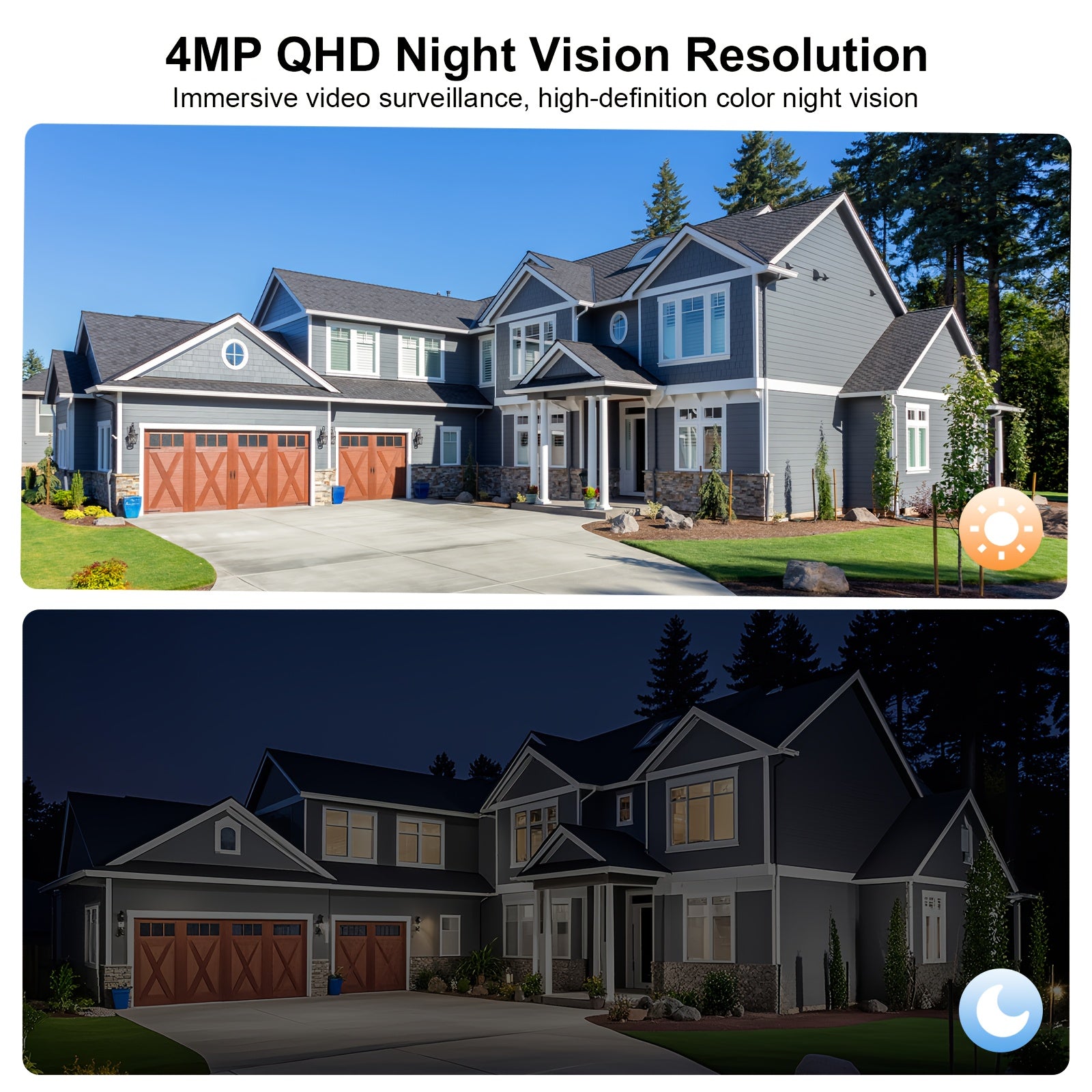 Solar Security Cameras Wireless Outdoor, 4 Cam-Kit, 4MP Solar Security Camera Wireless System, Color Night Vision, Motion Detection, No Monthly Fee, 64GB Memory Card, Outdoor Surveillance, Property Protection, Wireless Setup,