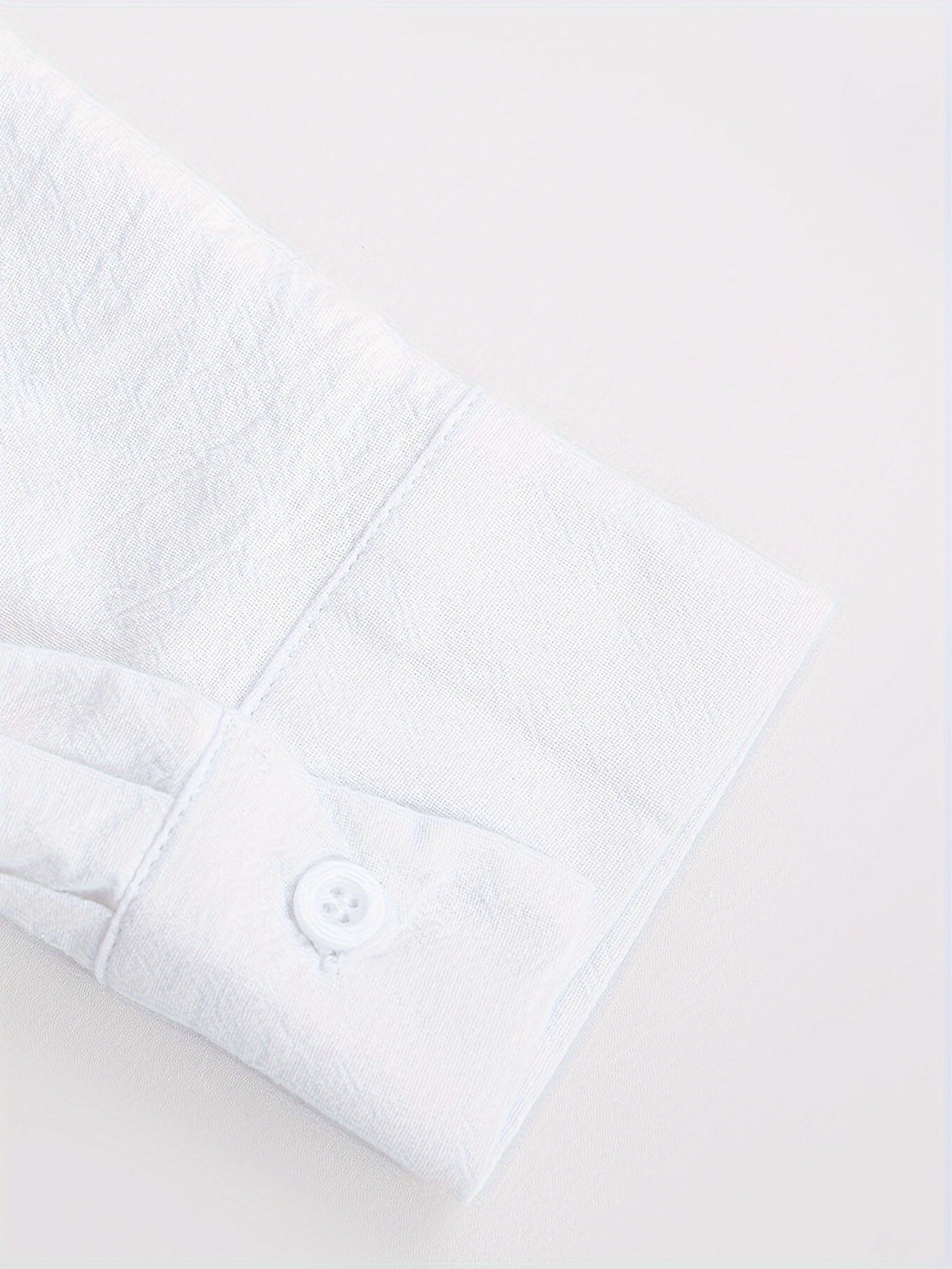 Solid Color Men's Cotton Long Sleeve Button Up Shirt, Men's Spring Fall Lapel Top