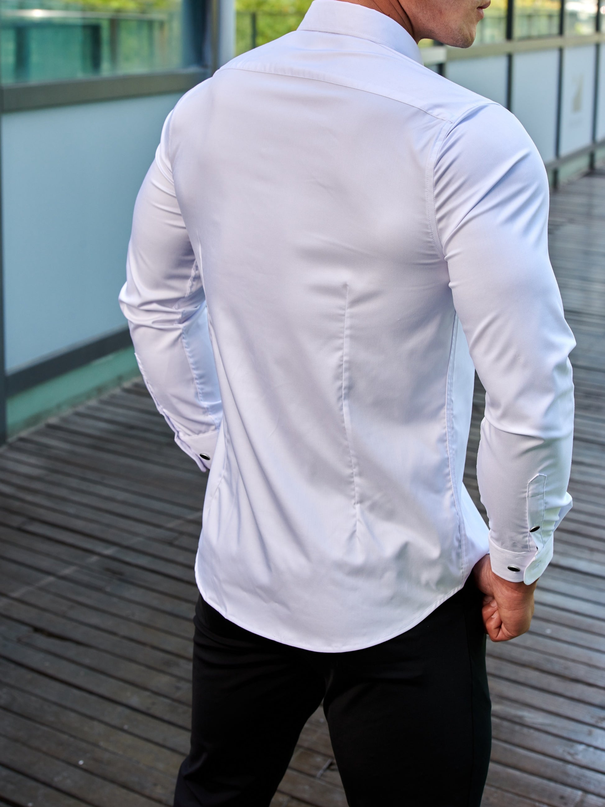 Solid Color Men's Slim Fit Stretch Quick-drying Long Sleeve Button Up Shirt, Spring Fall Workout Activity