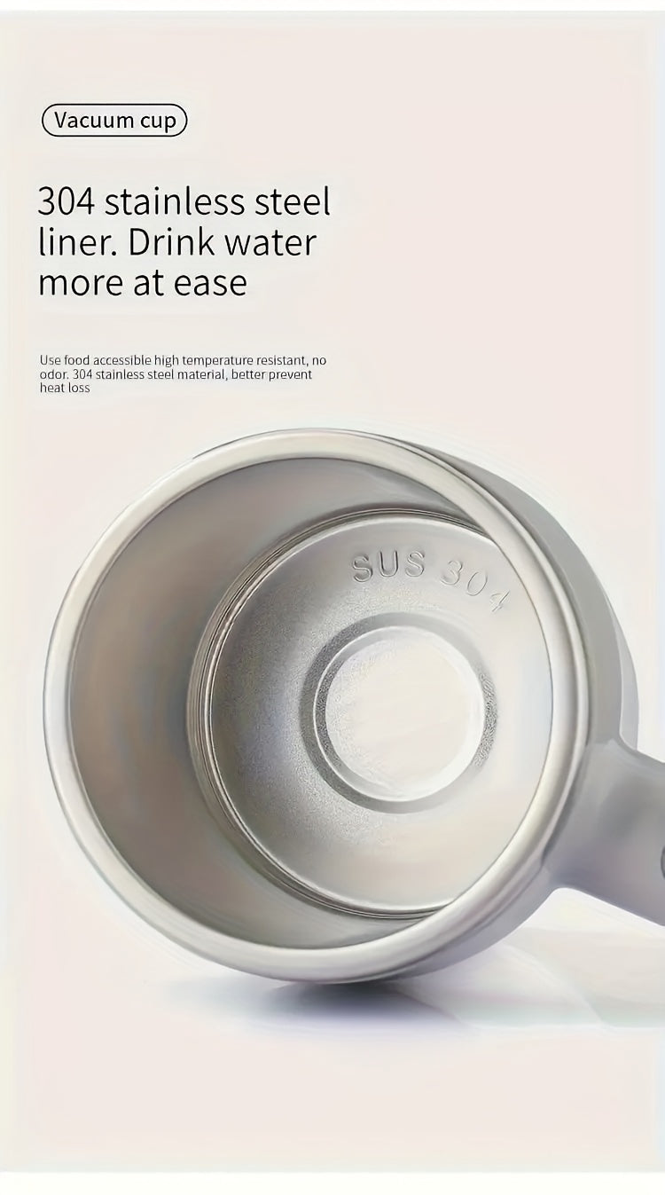 Spill-Proof, Stainless Steel Self-Stirring Coffee Mug - Battery-Powered, Reusable Magnetic Mixing Cup for Home, Office & Travel (AAA Batteries Not Included)
