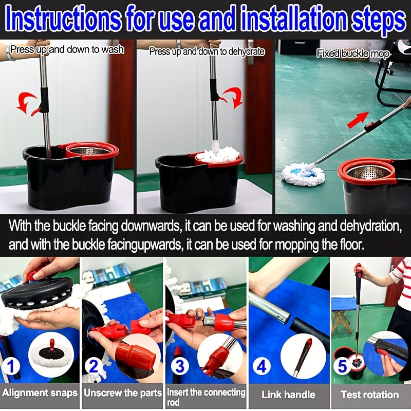 Spin mop and bucket, 360° spin mop, dust removal tool integrated soak and rinse function, with 2 microfiber mop heads, hands-free wash mop, retractable stainless steel handle, for floor cleaning, cleaning supplies