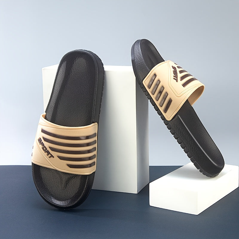 SPONT Men's Summer Casual Slip-On Flip-Flops - Lightweight PVC & EVA Cushioned Comfort, Striped Design for Indoor/Outdoor Use, Beach, Home, Office - Breathable & Non-Slip