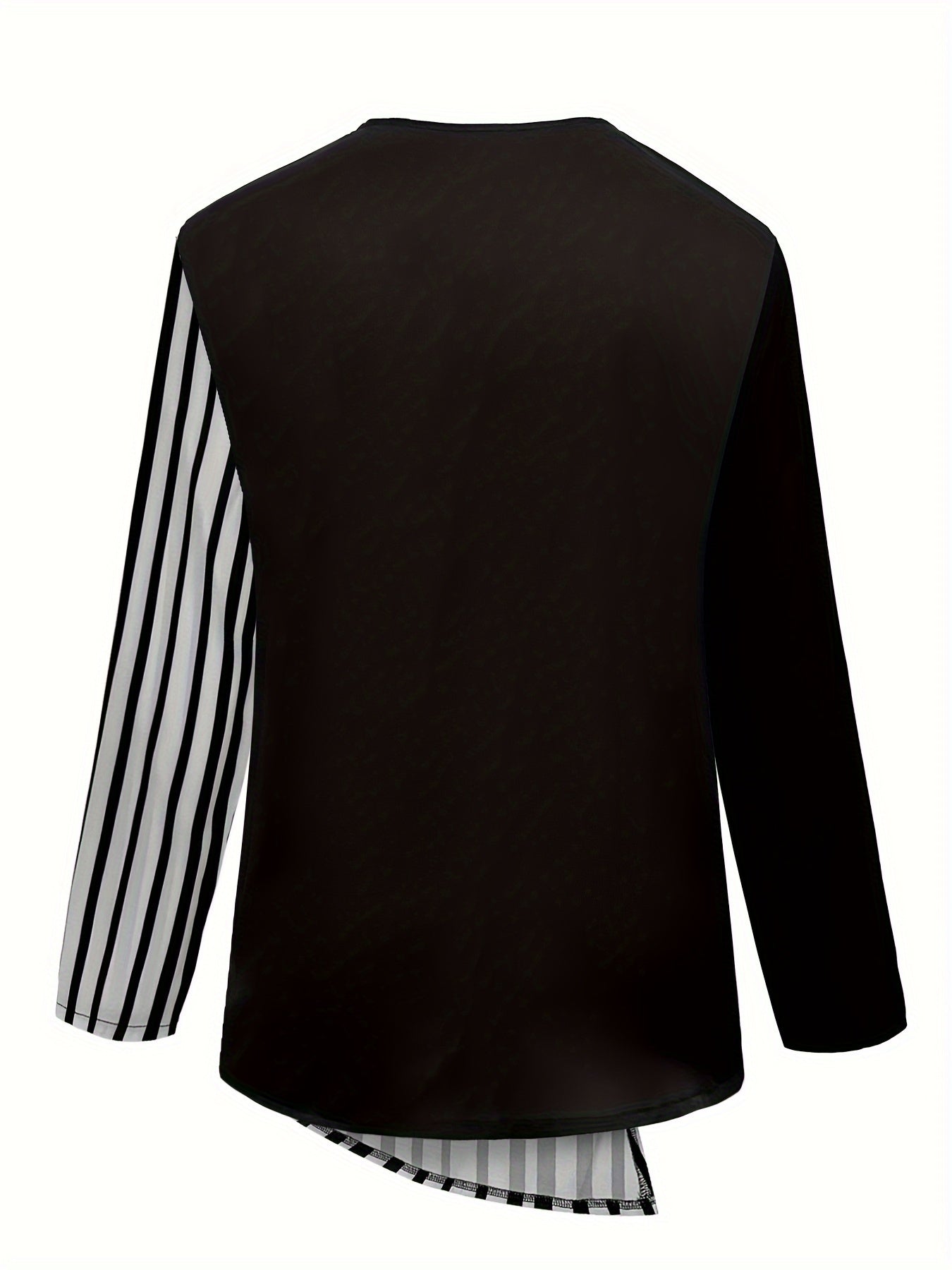 Stripe Print Button Front Asymmetric Blouse, Elegant Long Sleeve Top For Spring & Fall, Women's Clothing