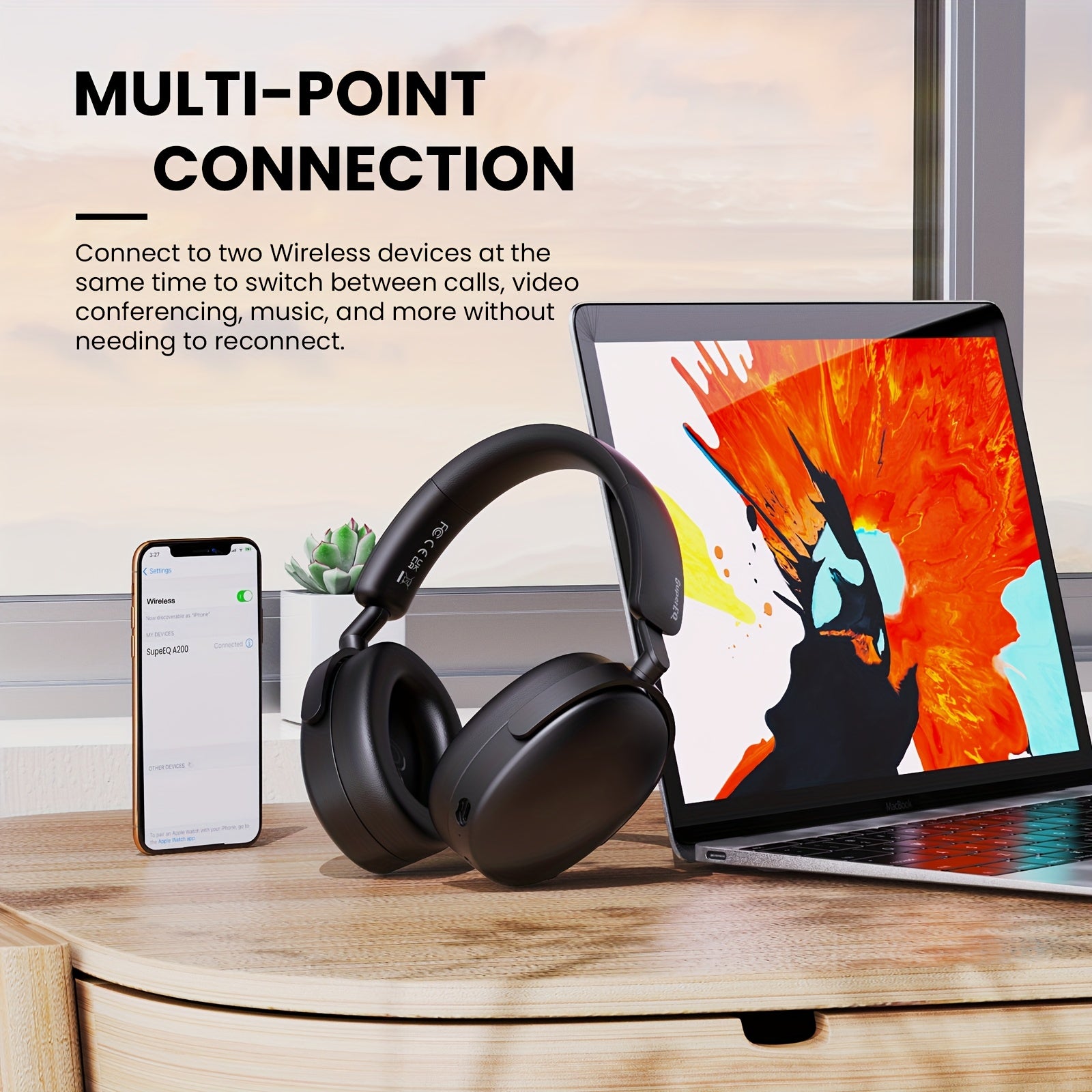 SuperEQ A200 Wireless Wireless 5.4 Headphones Hybrid Active Noise Canceling Over Ear Headset Hi-Res Audio 6-Mic AI ENC 100hrs Playtime APP Control