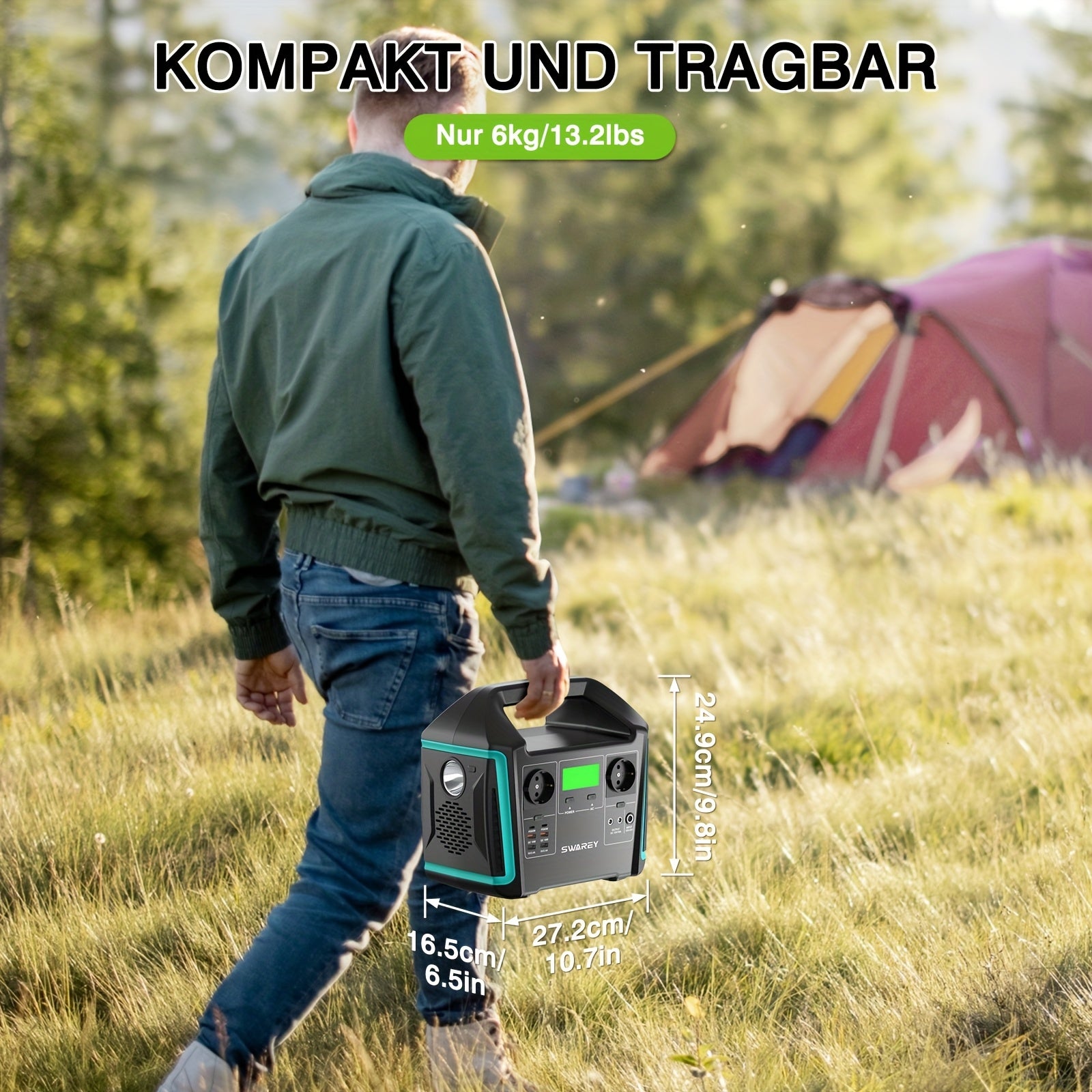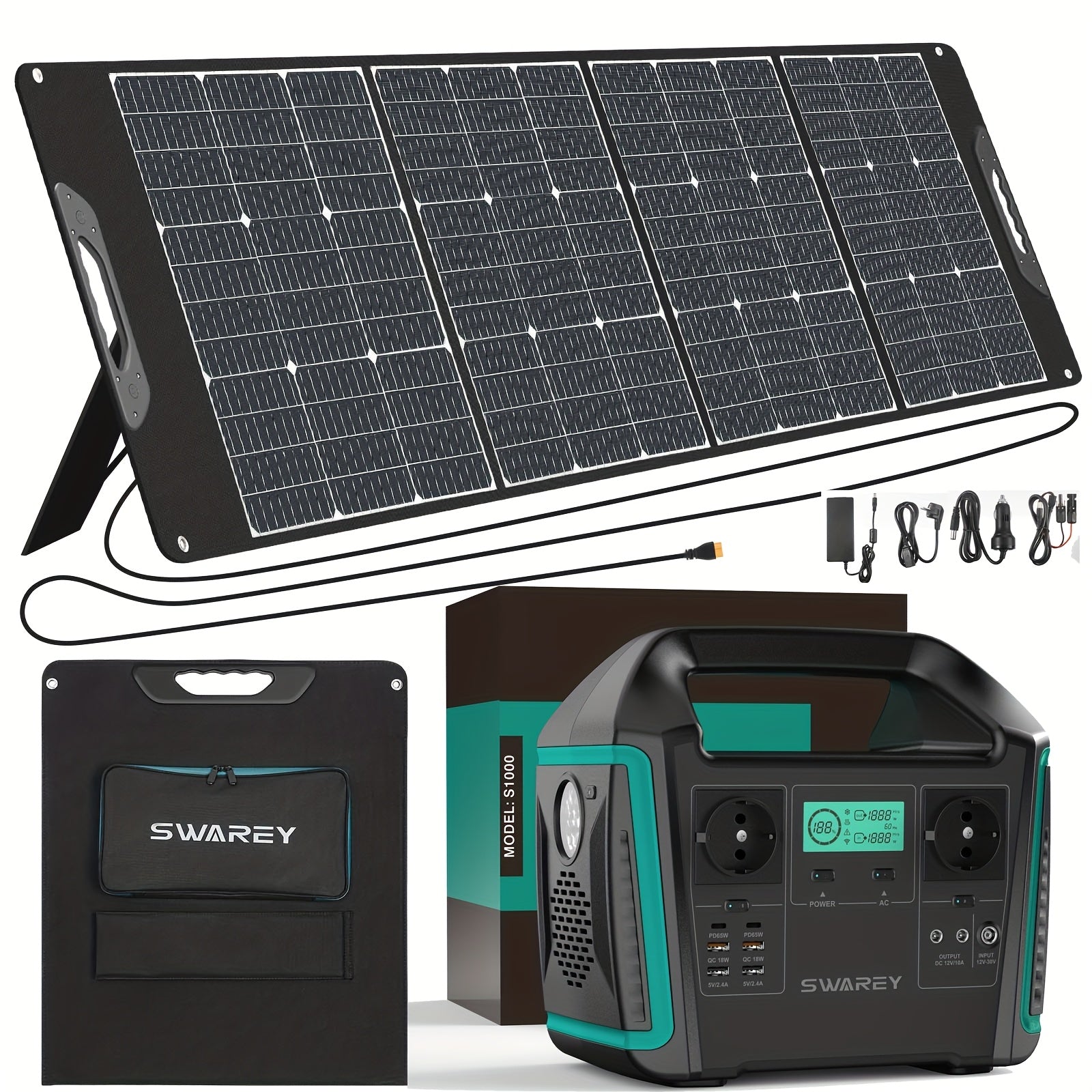 SWAREY Portable Power Station with 200W Solar Panel, 725.76Wh Solar power bank, 1000 W (Surge 1500 W) AC Outputs/Pure Sine Wave, Emergency power bank, 2 X 65 W USB-C Connection, Power power bank Battery for Outdoors, Camping,