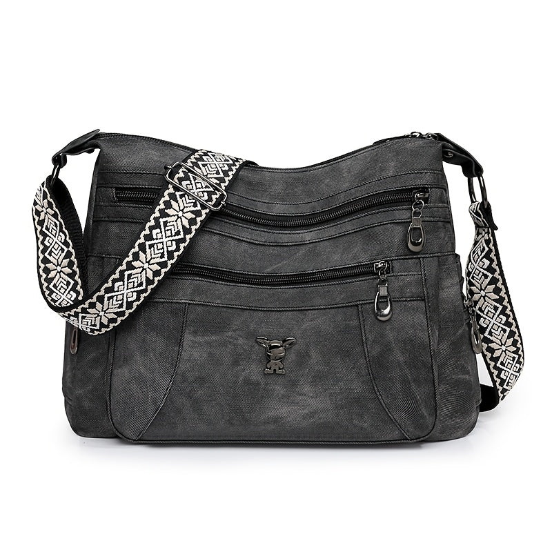 Taole Women's Vintage Bohemian PU Shoulder Bag - Adjustable Strap & Zipper Closure, Retro 1950s Handbag in Khaki/Ginger/Gray/Blue/Black, Casual & Dressy Outfits, Durable & Oil-Tanned Edges