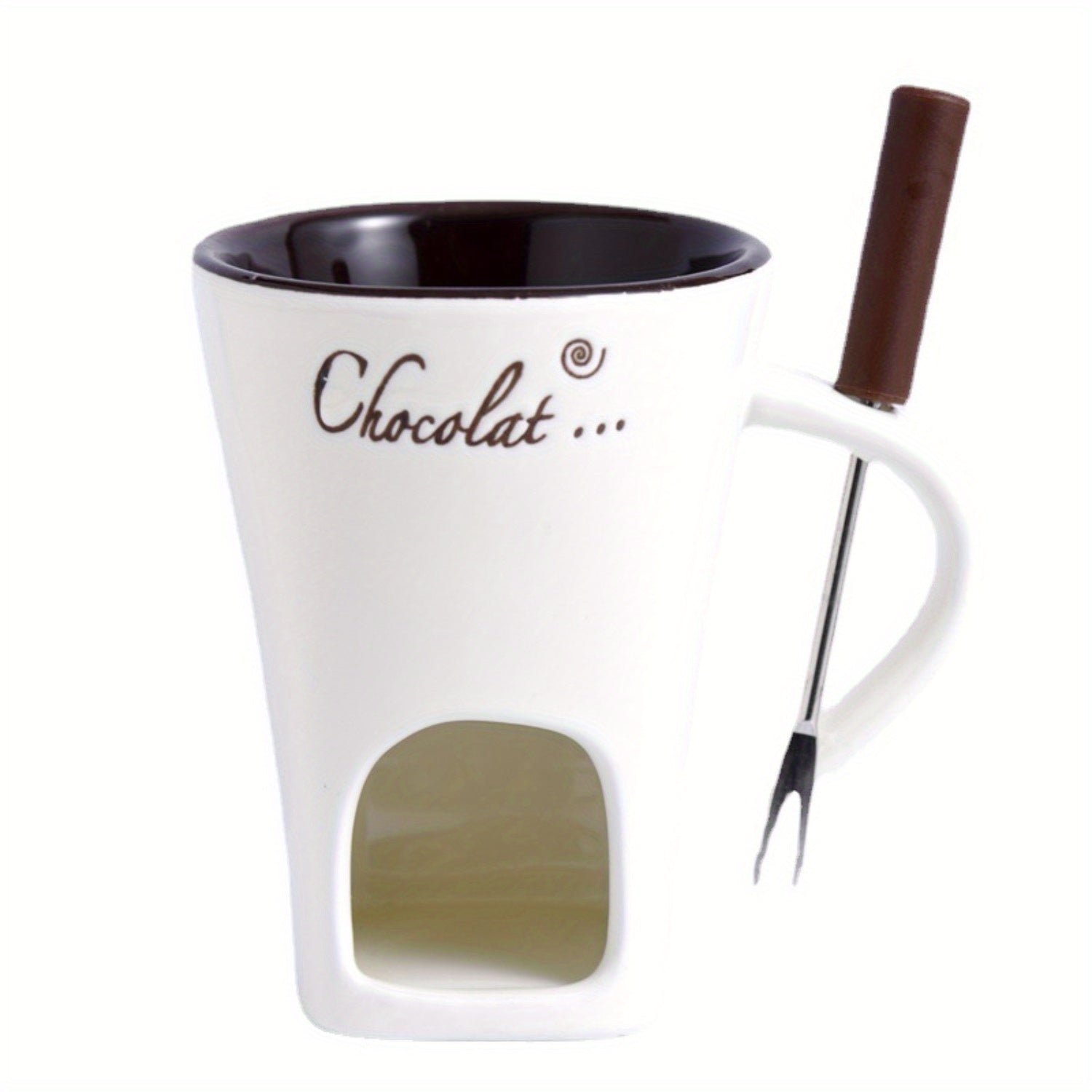 TFS Chocolate Fondue Mug - Ceramic, Reusable, Hand-Wash Only, Multipurpose Hot Chocolate & Fondue Pot with Whisk, Ideal for Cheese, Caramel, Butter, Hot Chocolate Making | Whisked Drinkware | Durable Drinkware
