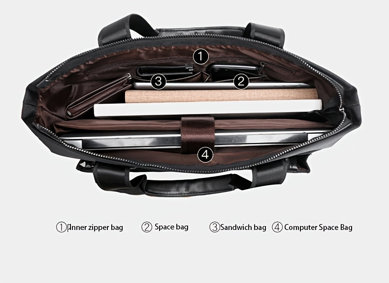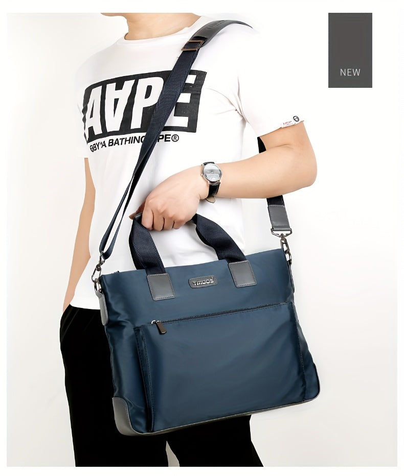 TMOOS Men'S Lightweight Oxford Business Casual Tote Bag - Large Capacity Multi-Compartment, Adjustable Shoulder Strap, Durable & Stylish for Work, Travel, and Everyday Use, Travel Tote Bag, Professional Appearance, Secure Zip