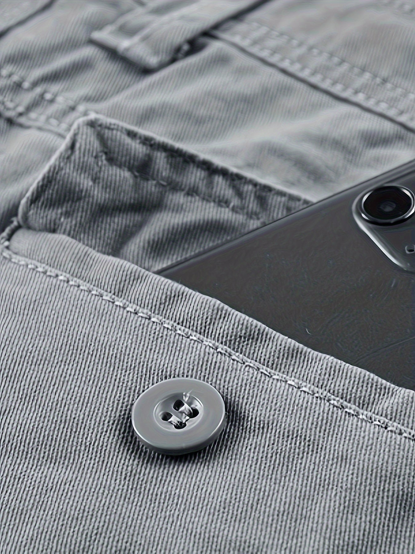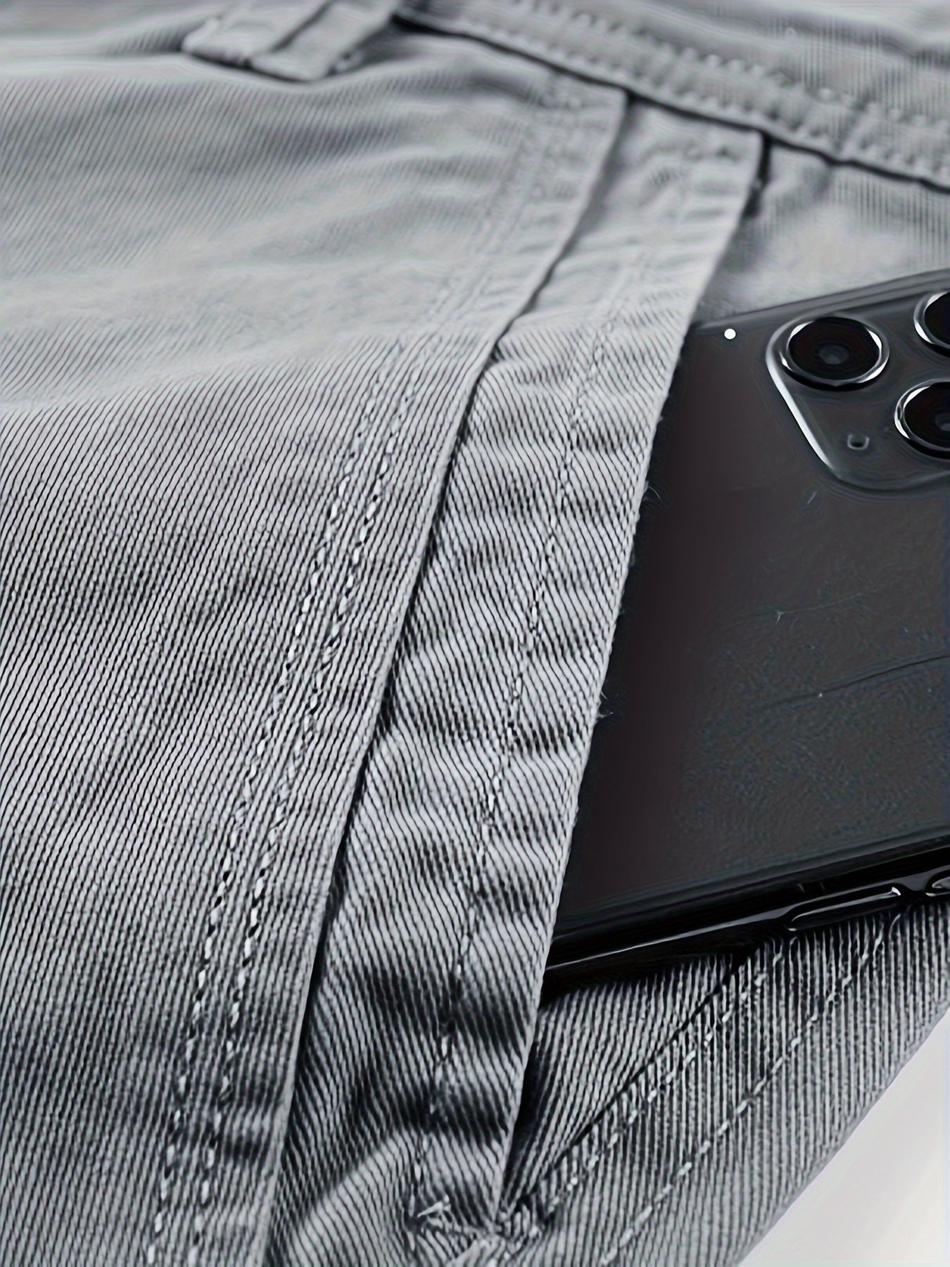 Two-Piece Set, Men's Solid Color Outdoor Casual Comfortable Breathable Multi-Pocket Cargo Shorts
