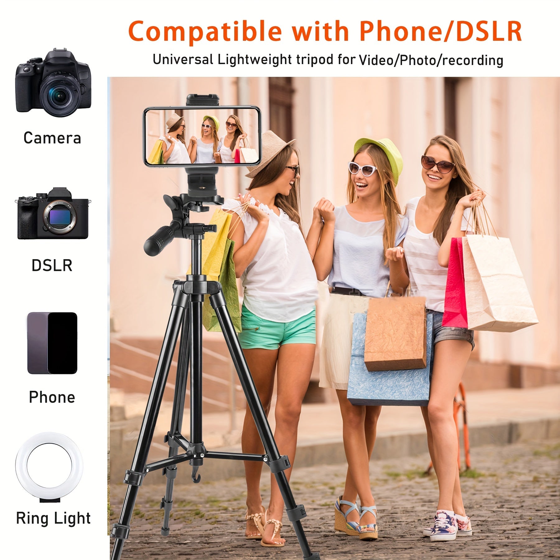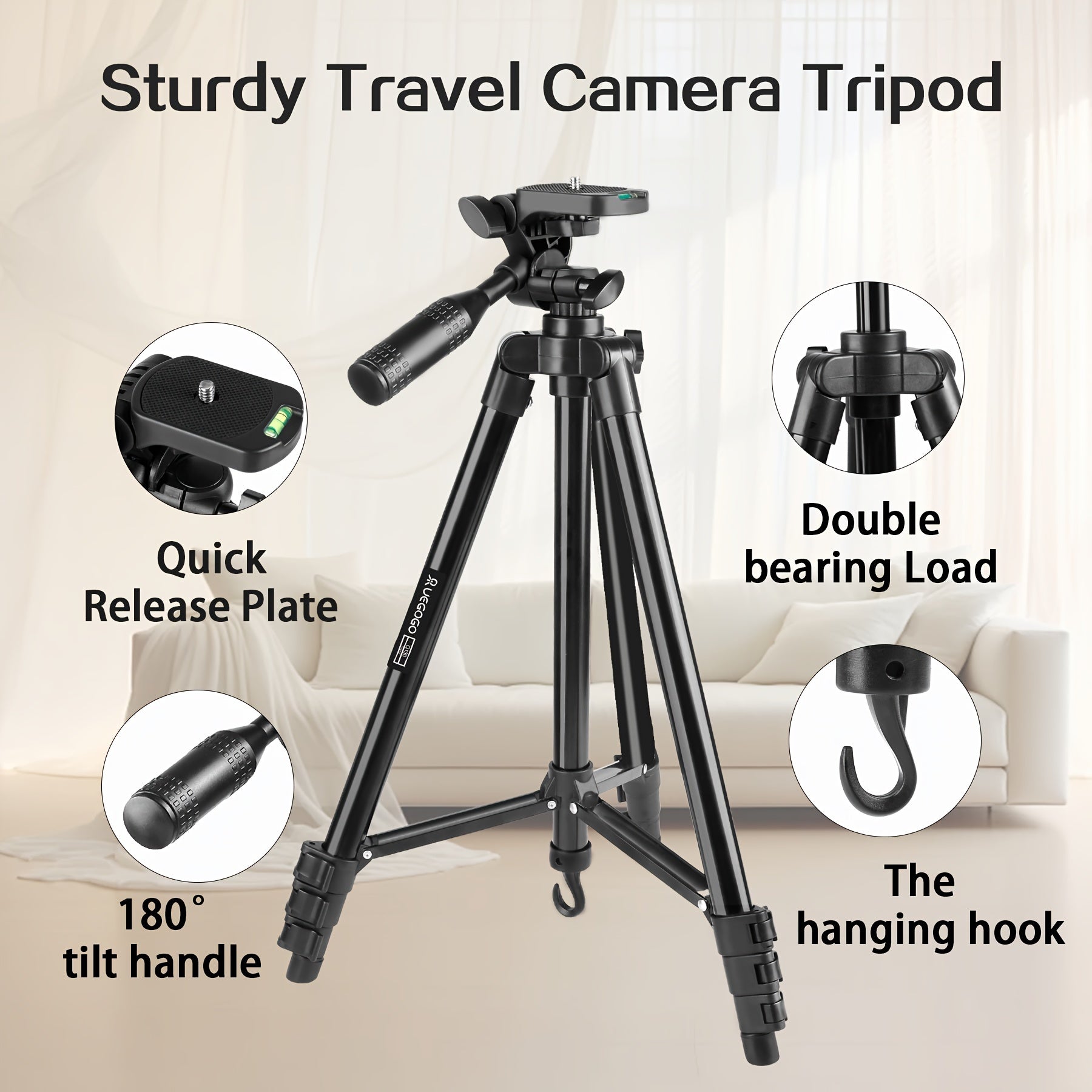 Ultra-Light 129.54cm Professional Tripod with 360° Rotating Pan Head for Phones & Cameras - Ideal for Recording & Live Streaming, Easy to Carry, UEGOGO