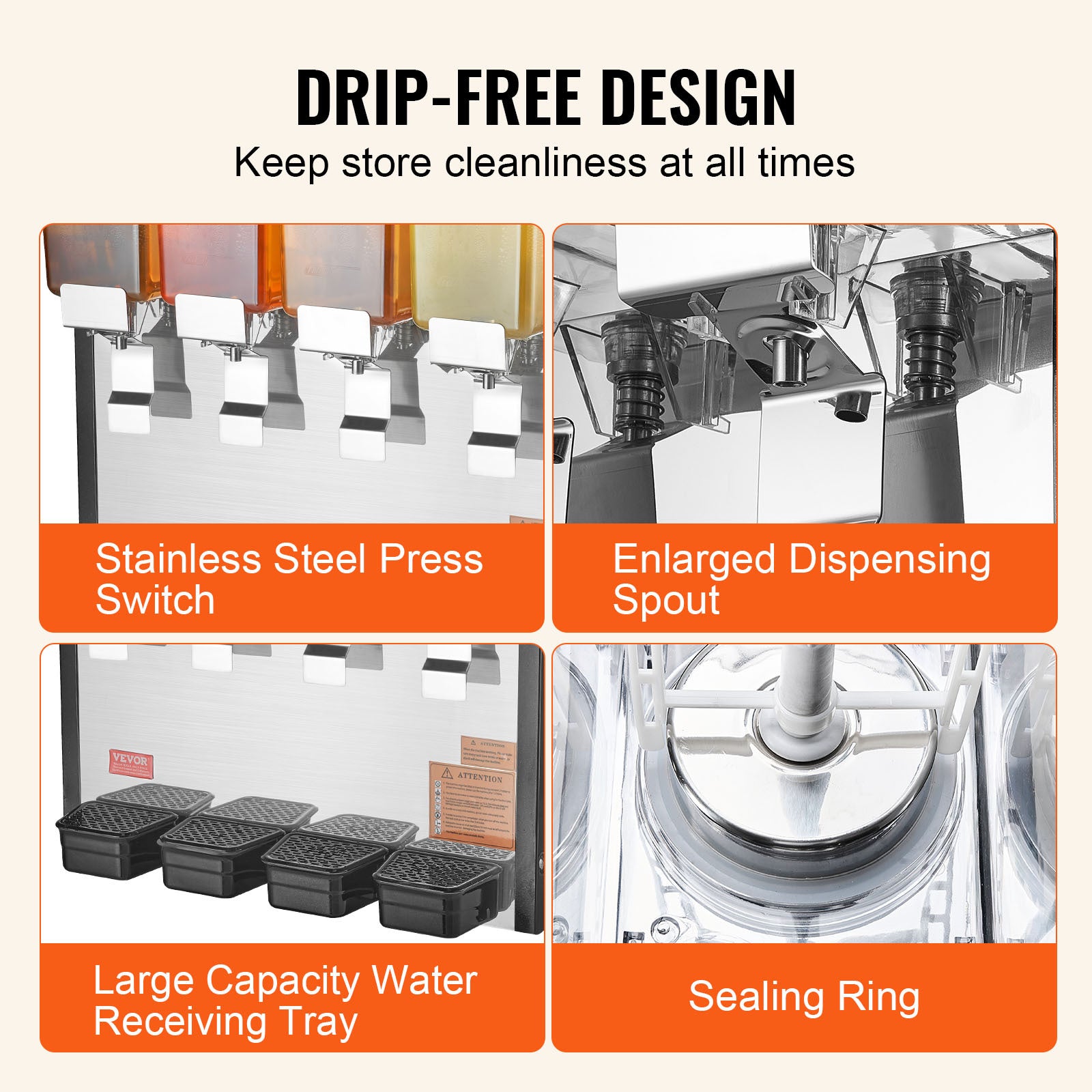 VEVOR Commercial Beverage Dispenser 10L x 4 Tanks Cold Juice Ice Drink Dispenser