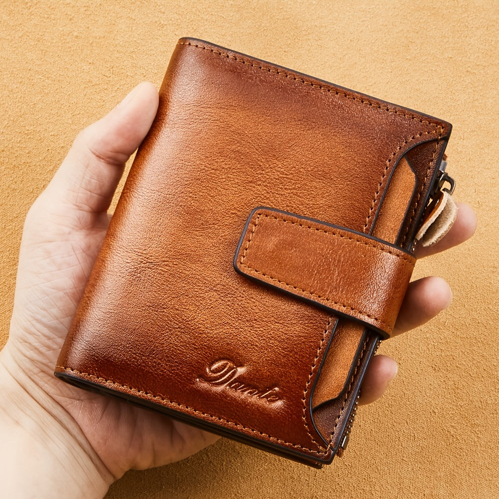 Vintage Men's Top Layer Cowhide Wallet RFID Anti-theft Card Holder Large Capacity 18 Card Slots Zipper Wallet Can Hold Coins Mobile Card Holder Can Hold Driver's License, 2 Large Banknote Slots