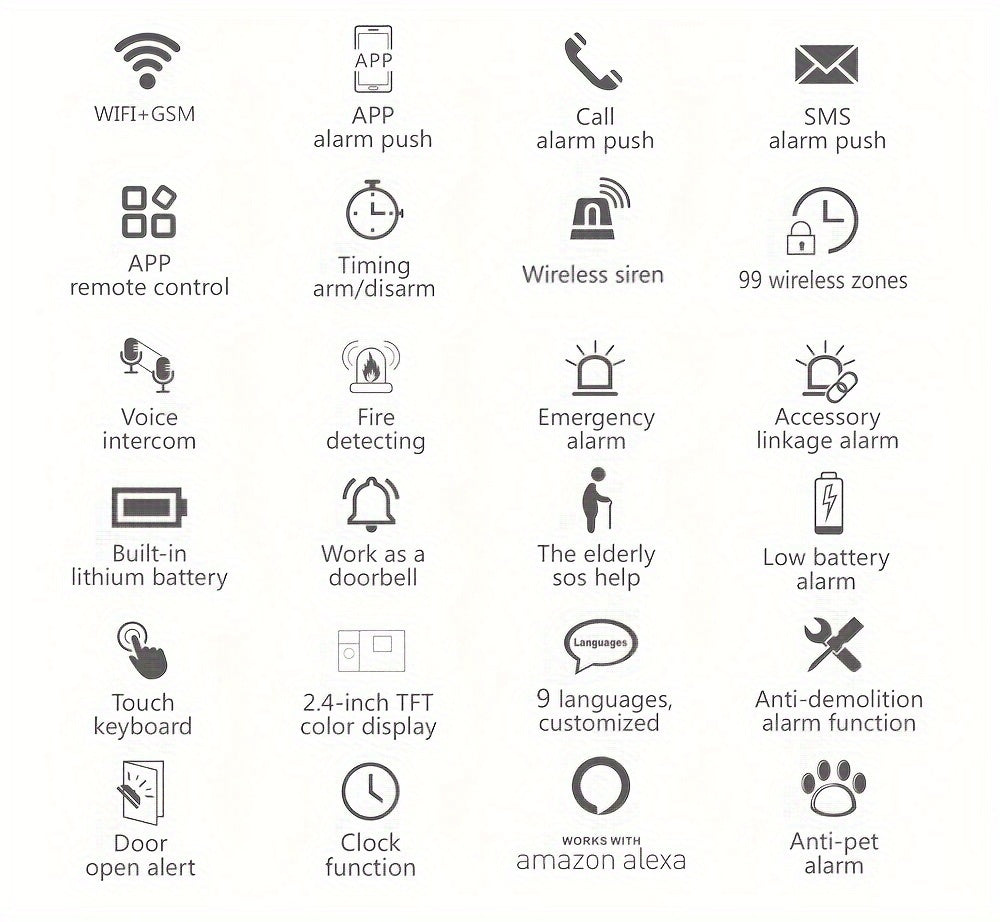 WiFi + GSM Auto-dial Smart Home Security Alarm System 433MHz LCD Display Alarm Panel Door Window Sensor PIR Motion Sensor Kit APP Remote Control Compatible With Alexa Google Home