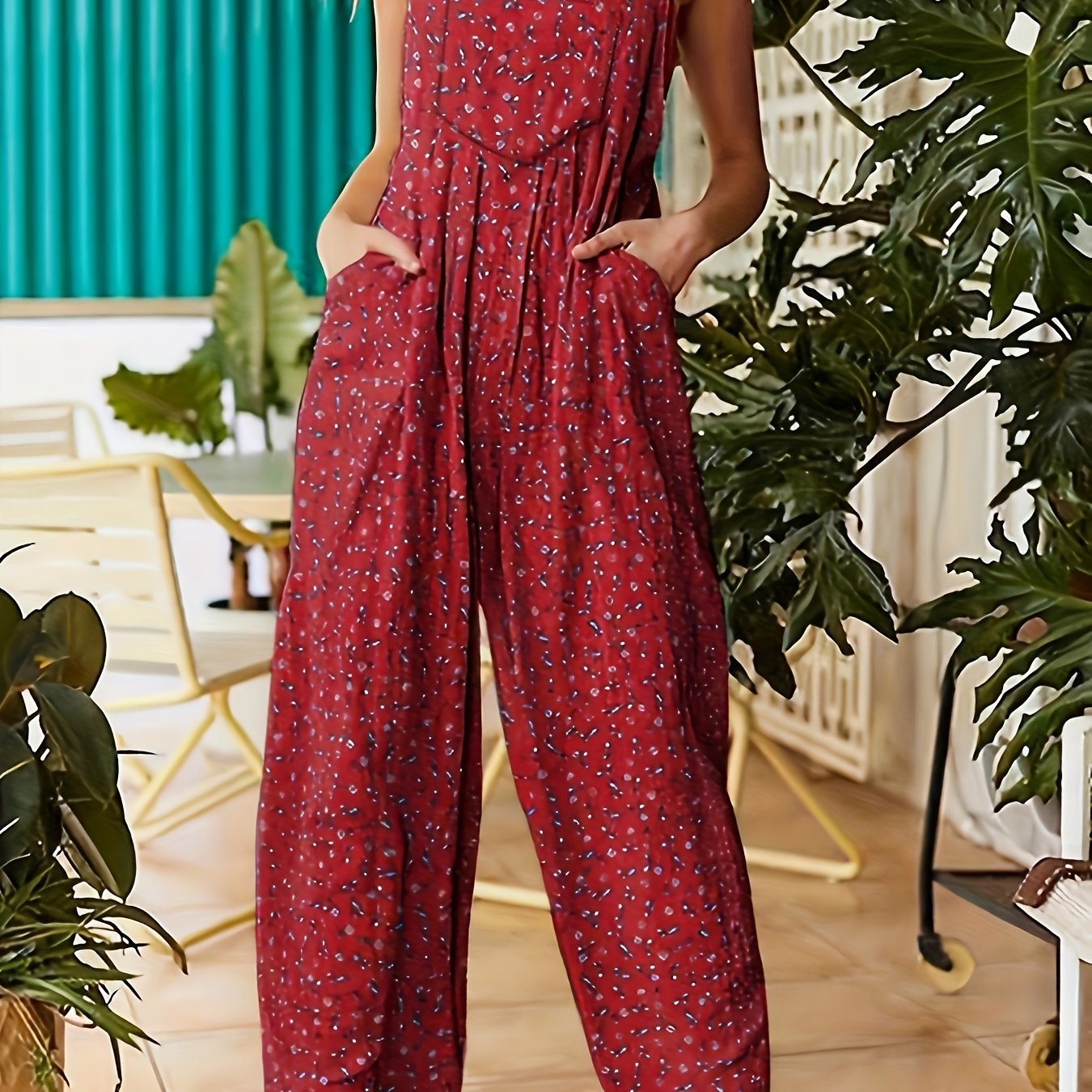 Women's Elegant Paisley Print Strap Pants - Lightweight 35% Side Pockets, Non-Stretch Fabric for Spring/Summer Casual & Formal Wear