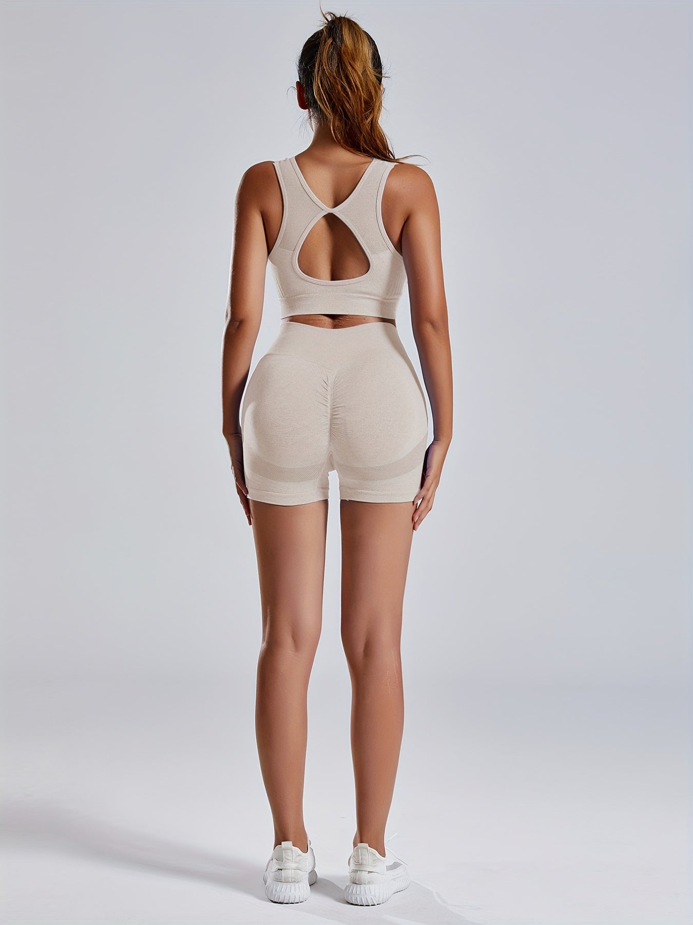 Women'S Seamless Sports Yoga Set, Summer New High Stretch Knit Fabric, Solid Color Polyamide 90% Elastane 10%, Short Length Fitness Gym Wear with Backless Bra and Butt Lifting Yoga Pants