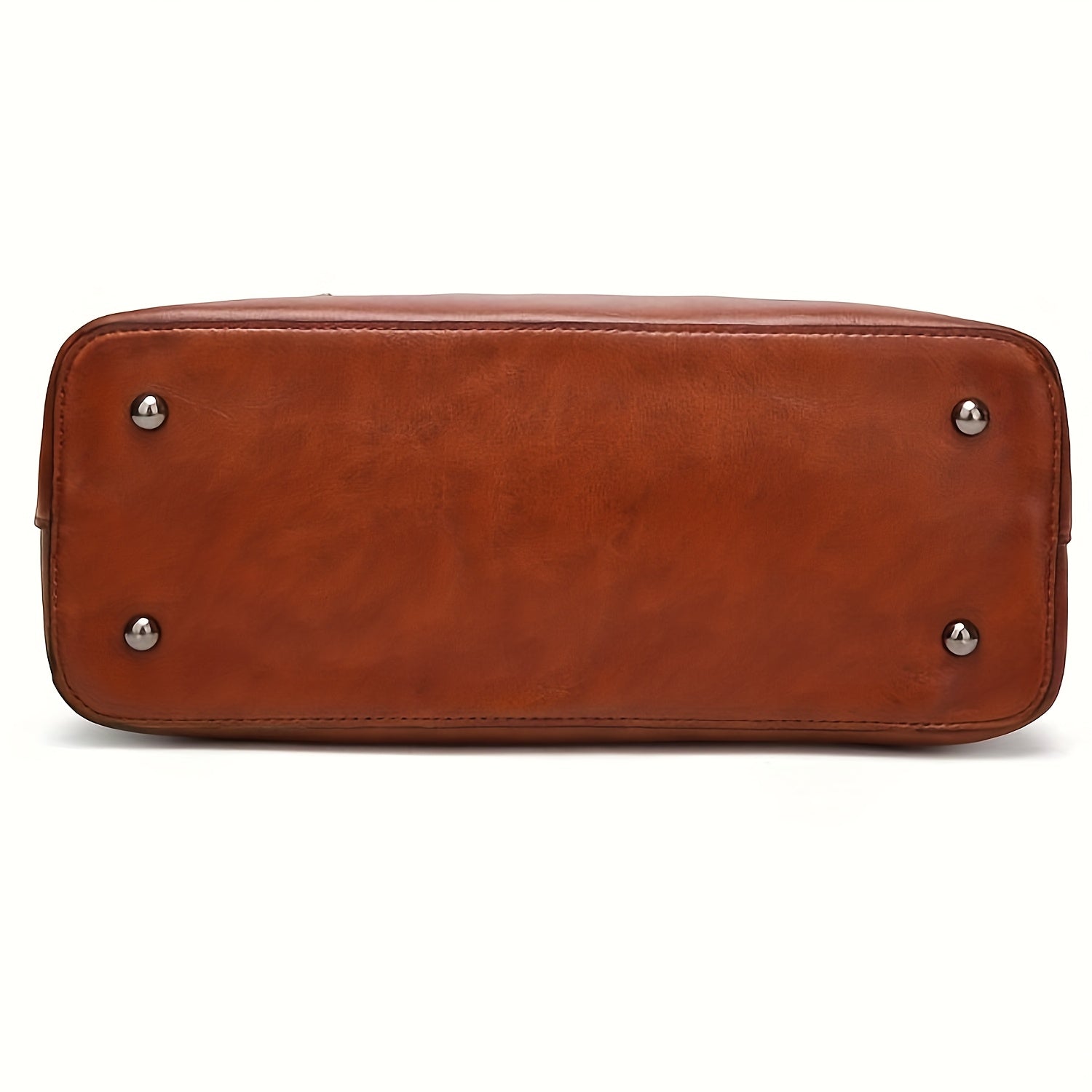 Women's Synthetic Handbag with Laptop Compartment & Detachable Strap - Golden-Tone Hardware, Zipper Closure, Spacious Work Bag for Travel, Business Meetings, Everyday Use - Available in Brown, Black, Red, Pink, Navy, Burgundy