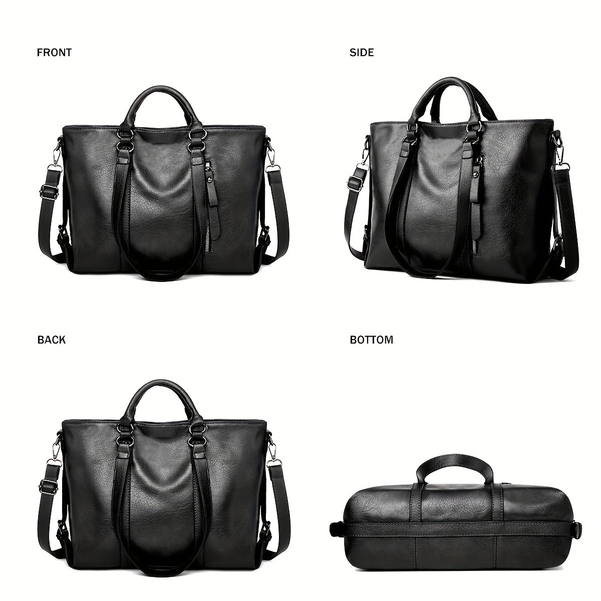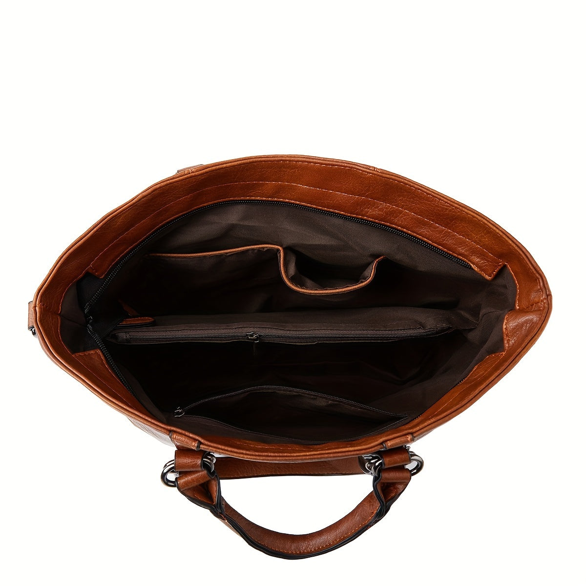 Women's Thickened Soft Synthetic Leather Tote & Crossbody Purse - Large Capacity Multi-Pocket Organizer with Removable Shoulder Strap, Zipper Closure, Oil-Edged Trim - Work, Travel, Casual Bag in Brown, Navy, Red, Black - Chr